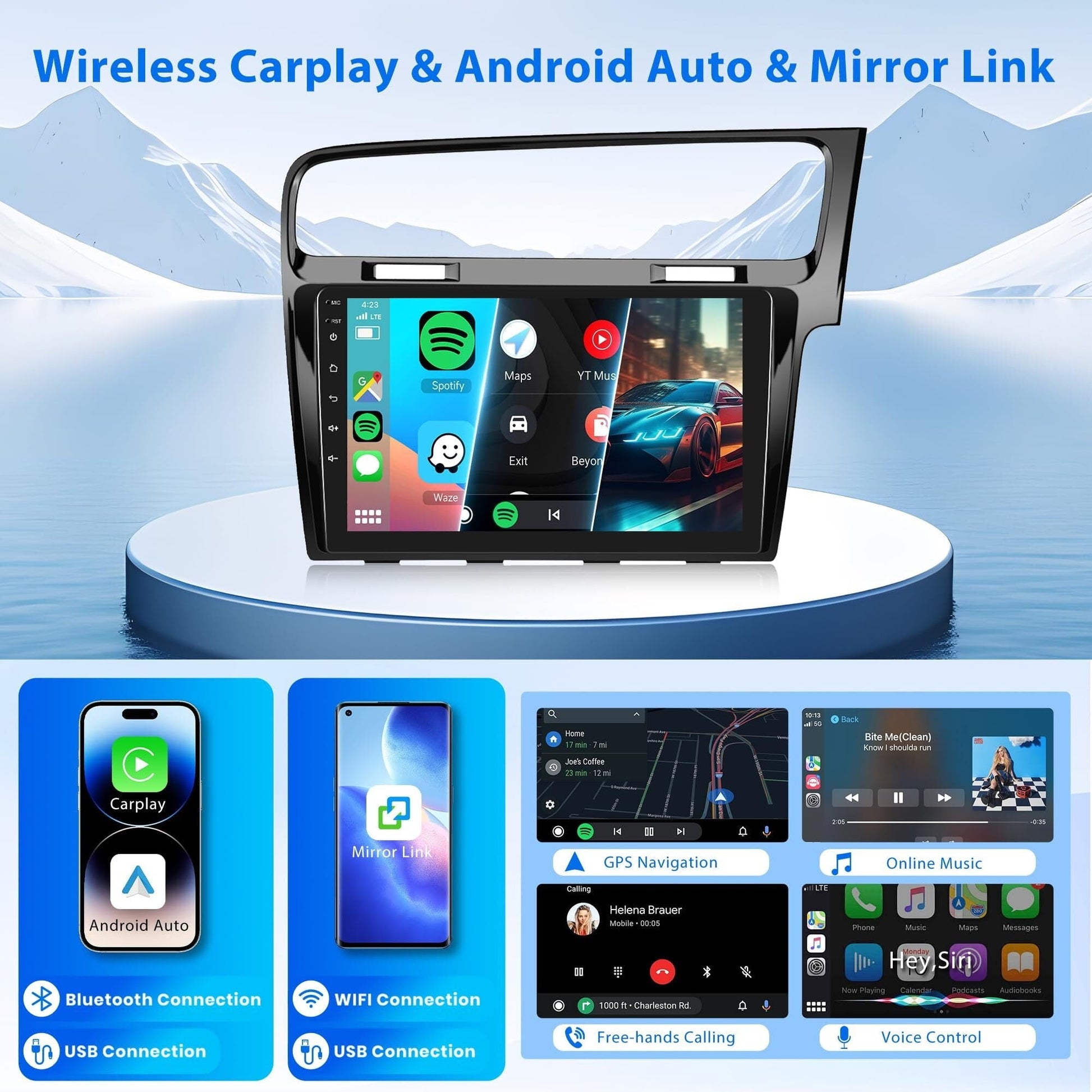 Wireless/Wired Apple Carplay&Android Auto2G RAM+32G ROM android car stereo for VW Golf auto radio supports wireless/wired apple carplay and android auto, connect the car stereo to your phone using a Bluetooth or USB cable! You can watch videos, navigate, make phone calls and more on the android car radio.