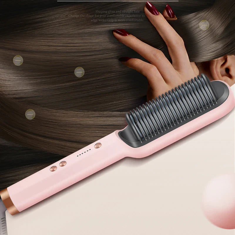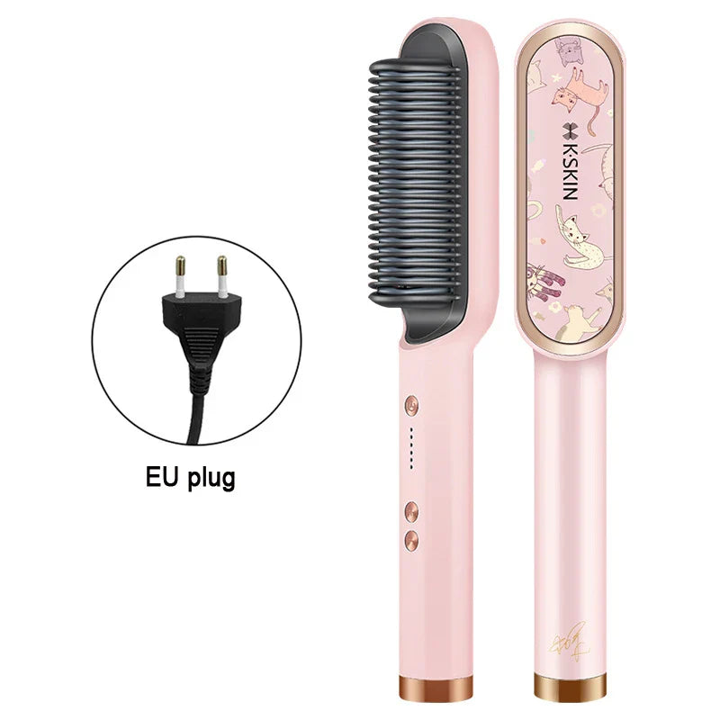 2in1 Professional Ionic Hair Straightener Curler Brush Ceramic PTC Heating Fast Straightening Curling Iron Hot Comb Styling Tool