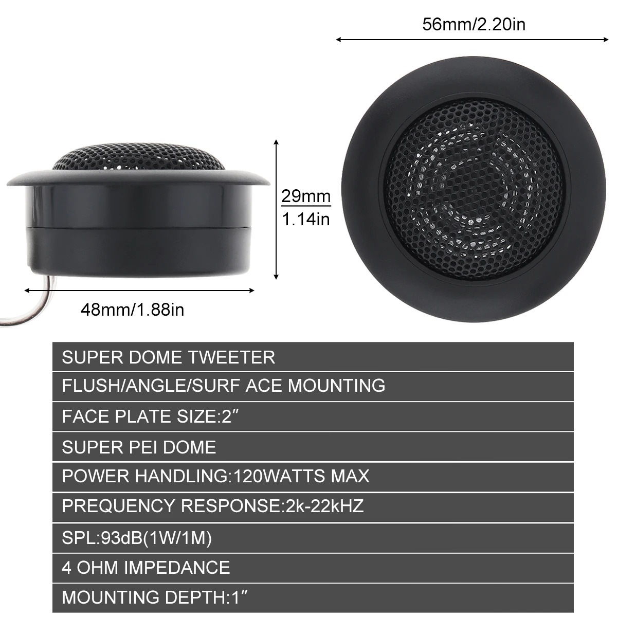 2pcs 2 Inch Car Tweeter Speakers 4 Ohm 120W Universal High Efficiency Mini Tweeter Dome Speakers for Car Audio System