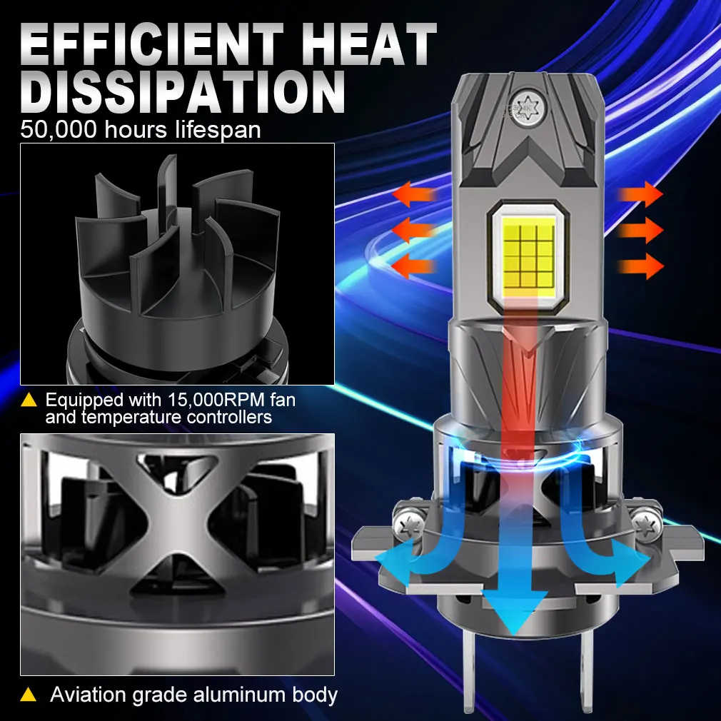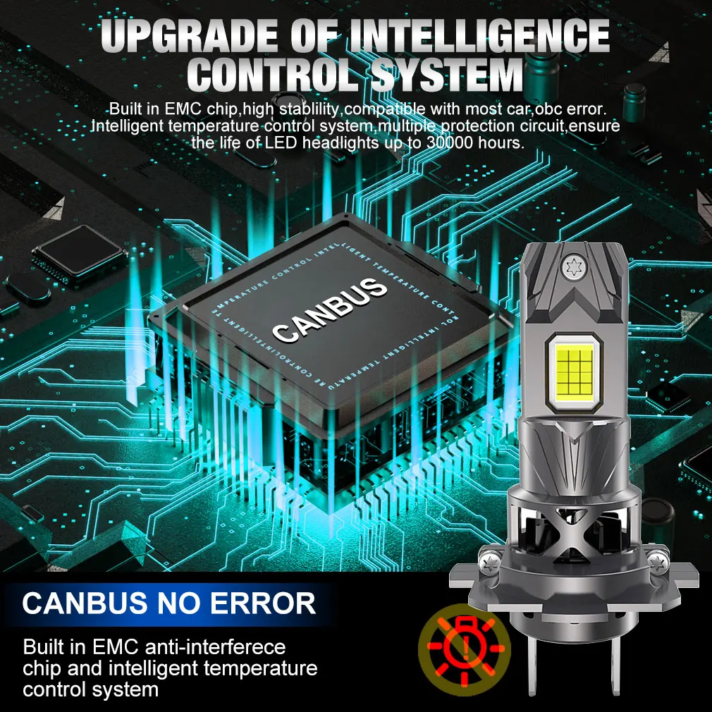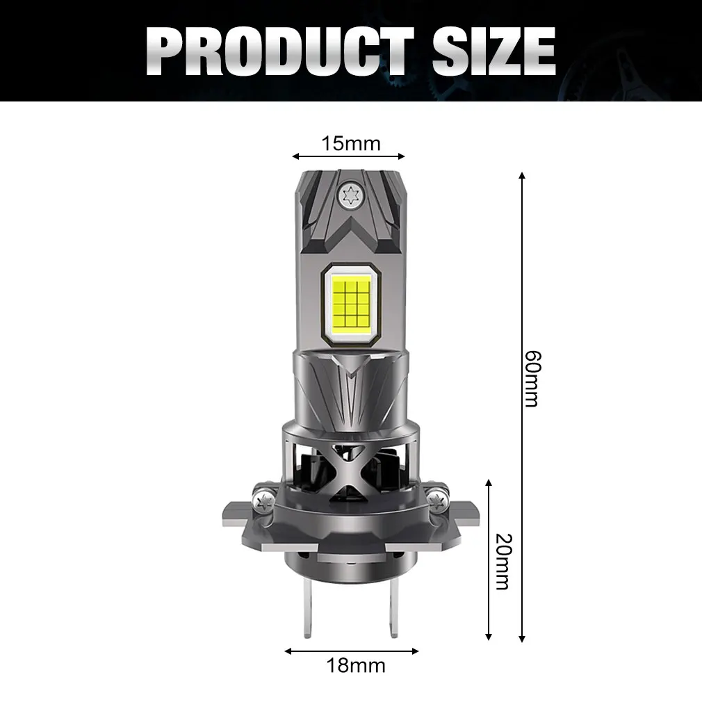 2Pcs 300W Turbo H7 LED Headlight Bulbs CANBUS Lights 30000LM H7 Led Mini Lamp 24pcs 3570 CSP Wireless Car LED with Fan 12V 6500K