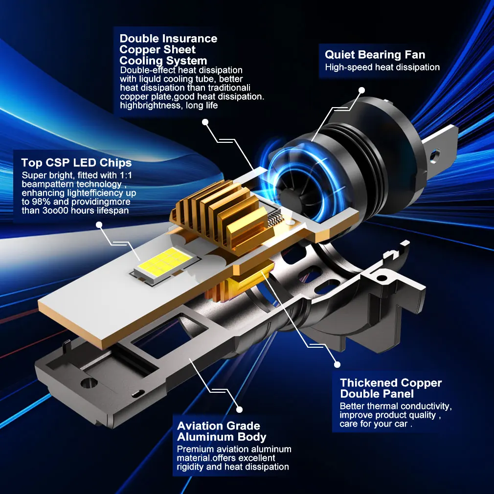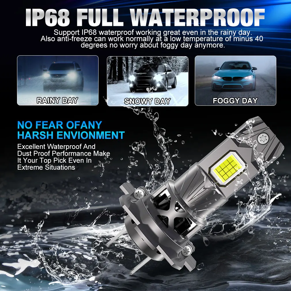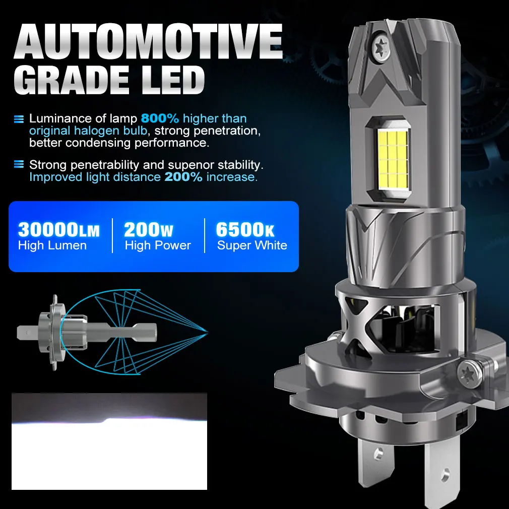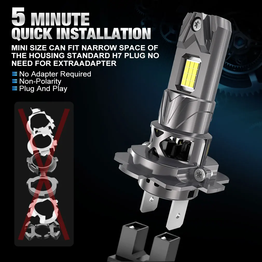 2Pcs 300W Turbo H7 LED Headlight Bulbs CANBUS Lights 30000LM H7 Led Mini Lamp 24pcs 3570 CSP Wireless Car LED with Fan 12V 6500K