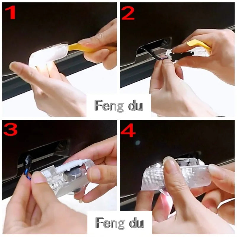 Easy Installation,Directly replace the original door light, no need to drill hole, easy to install in 5 mins, it will not damage the original car appearance.