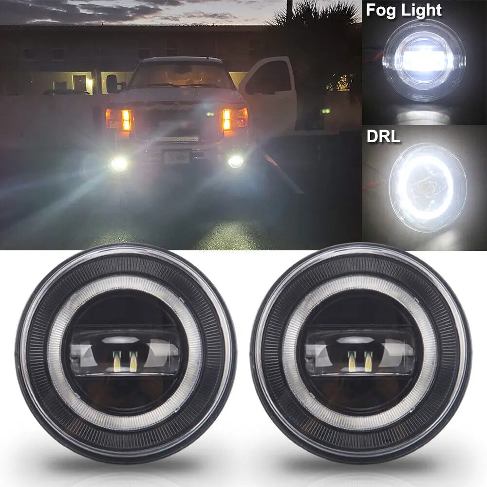 For 07-13 GMC Sierra 1500 2500 3500 Round LED Fog Lights Bumper Lamps DRL