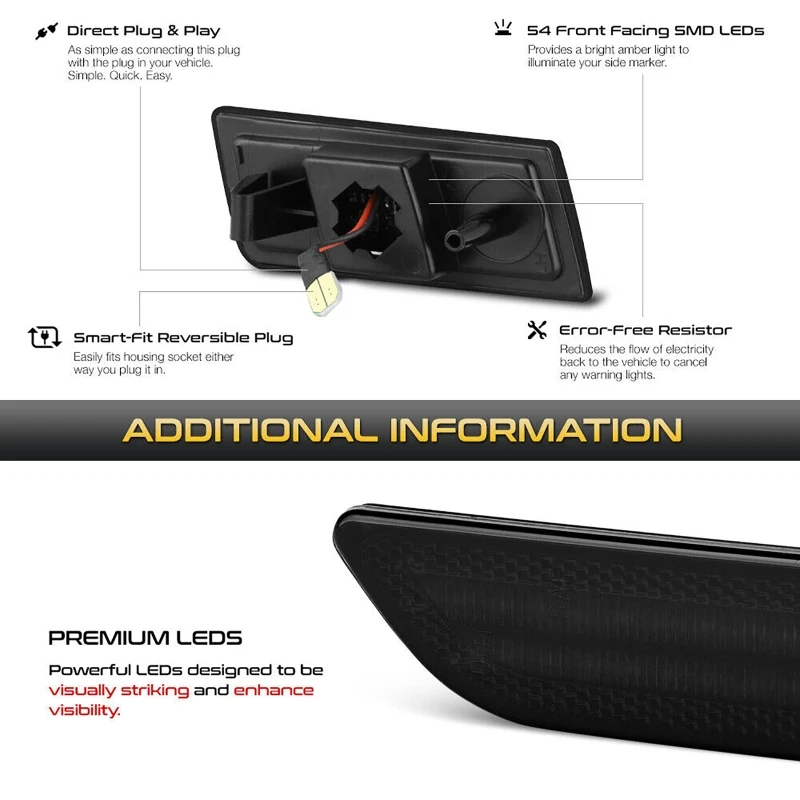 2pcs Smoked Shell Amber Car LED Front Bumper Side Marker Lights for Chrysler 300 2005-2014