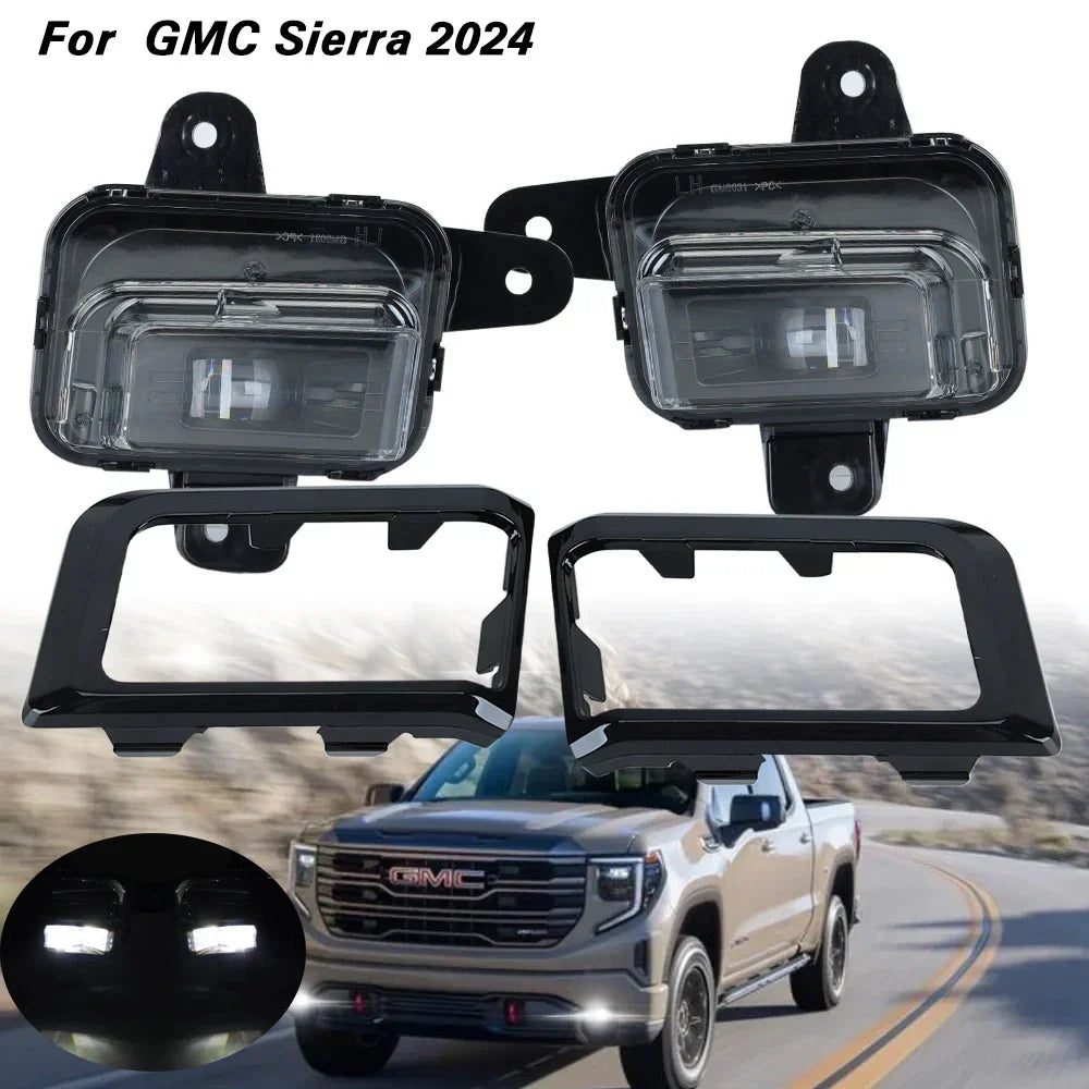 2x Front LED Fog Light For GMC Sierra 1500 2022 2023 2024 Driving Lamps Wiring headlights foglights cover frame kit accessories