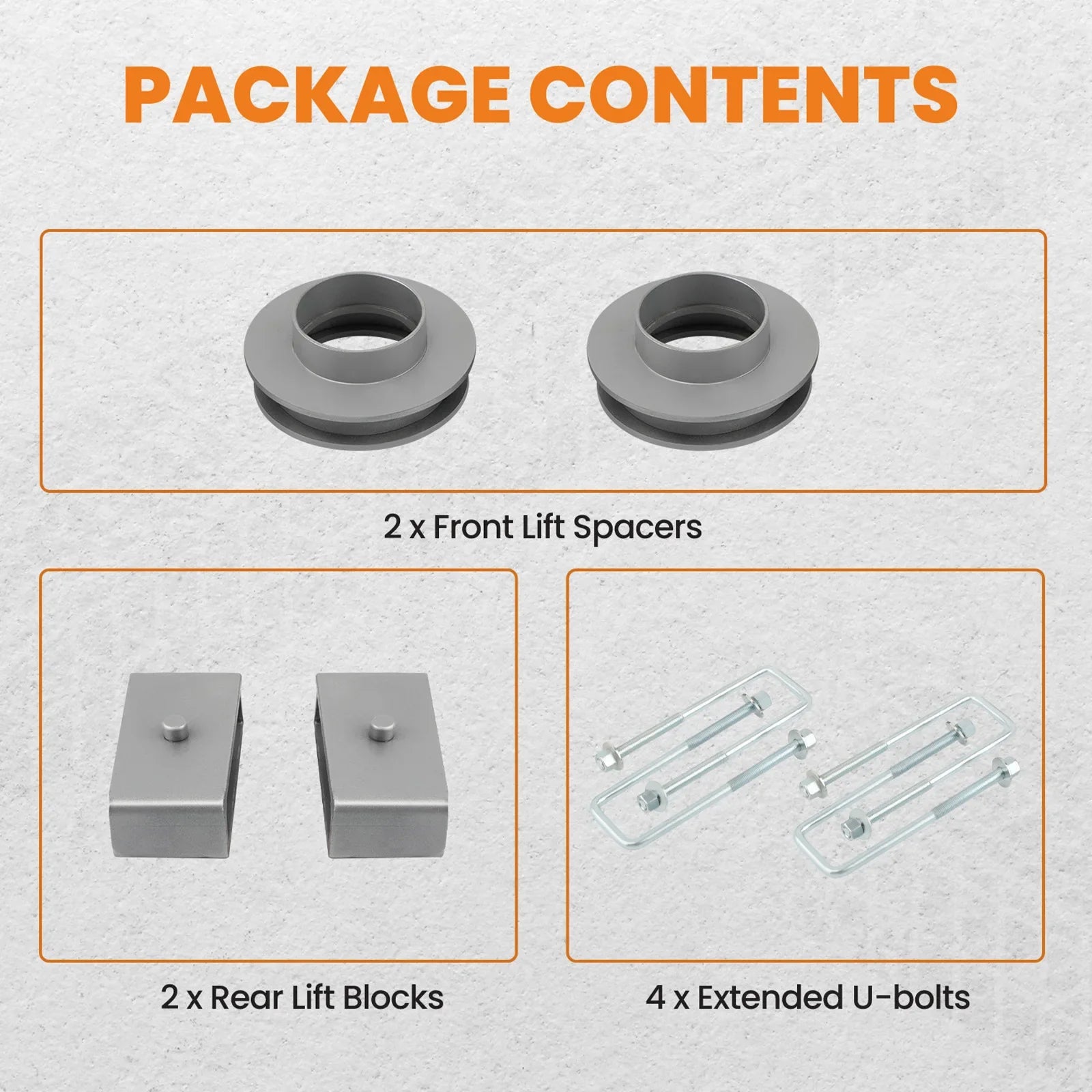 - 2x Front Lift Spacers