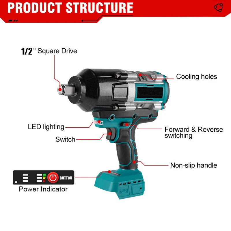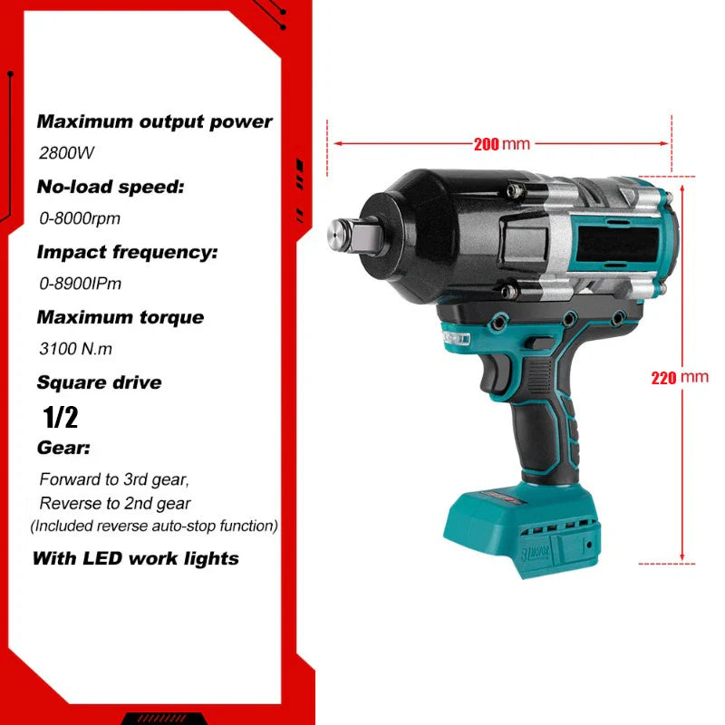 3100N.M High Torque Brushless Electric Impact Wrench Super Power Screwdriver Cordless Wrench Power Tools for Makita 18V Battery power tools