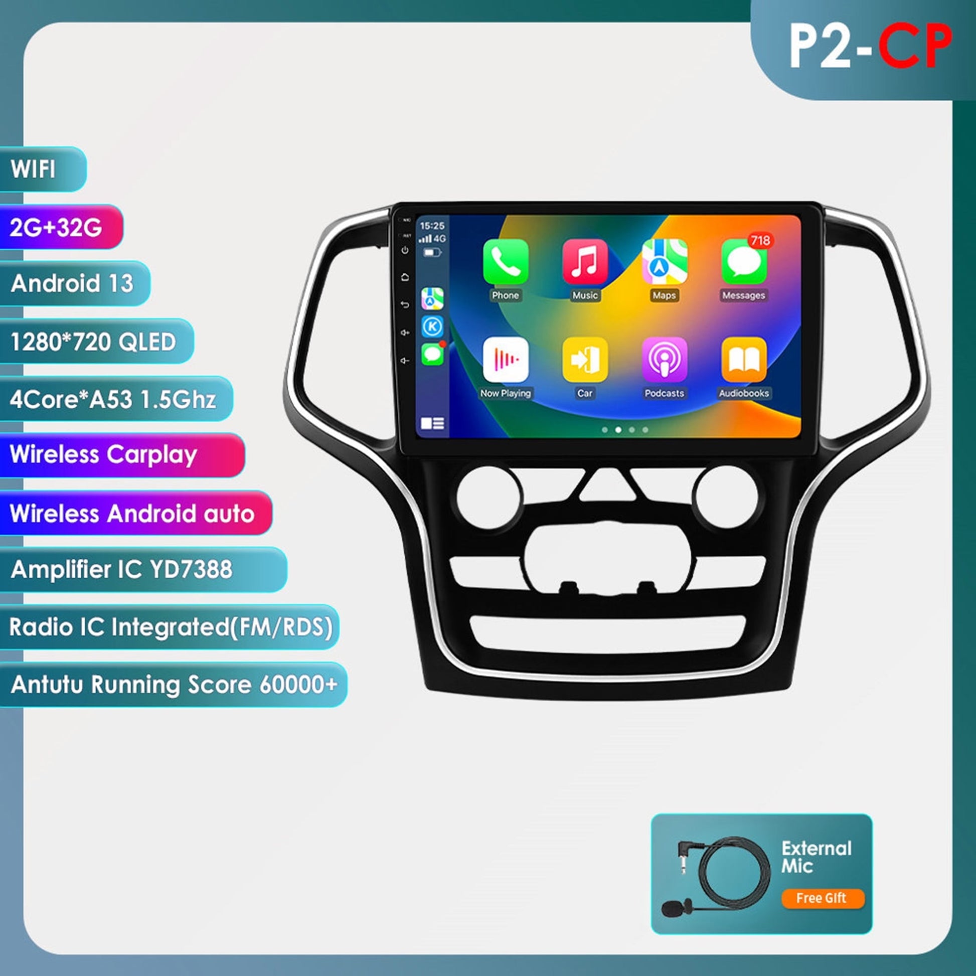 32GB Android 13 Bluetooth Apple Carplay Wifi RDS Car Stereo Radio Head Unit Multimedia GPS Navigation Player For Jeep Grand Cherokee WK2 2014 2015 2016 2017 2018 2019 2020 2022