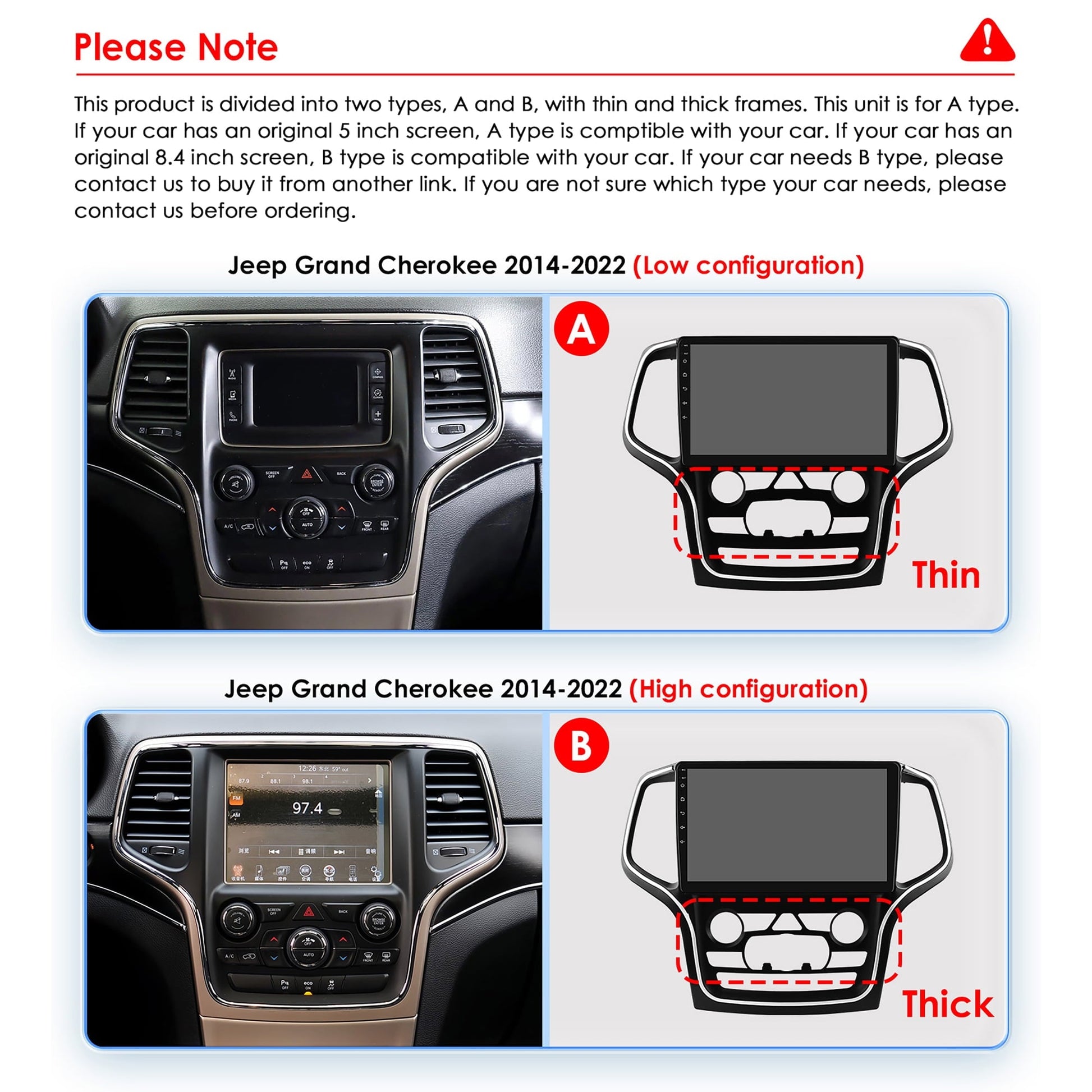 Note: This product is divided into two types, A and B, with thin and thick frames. This unit is for A type.
