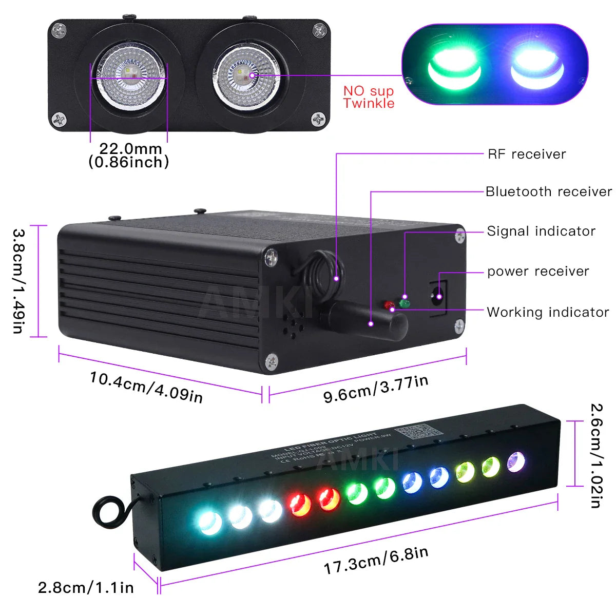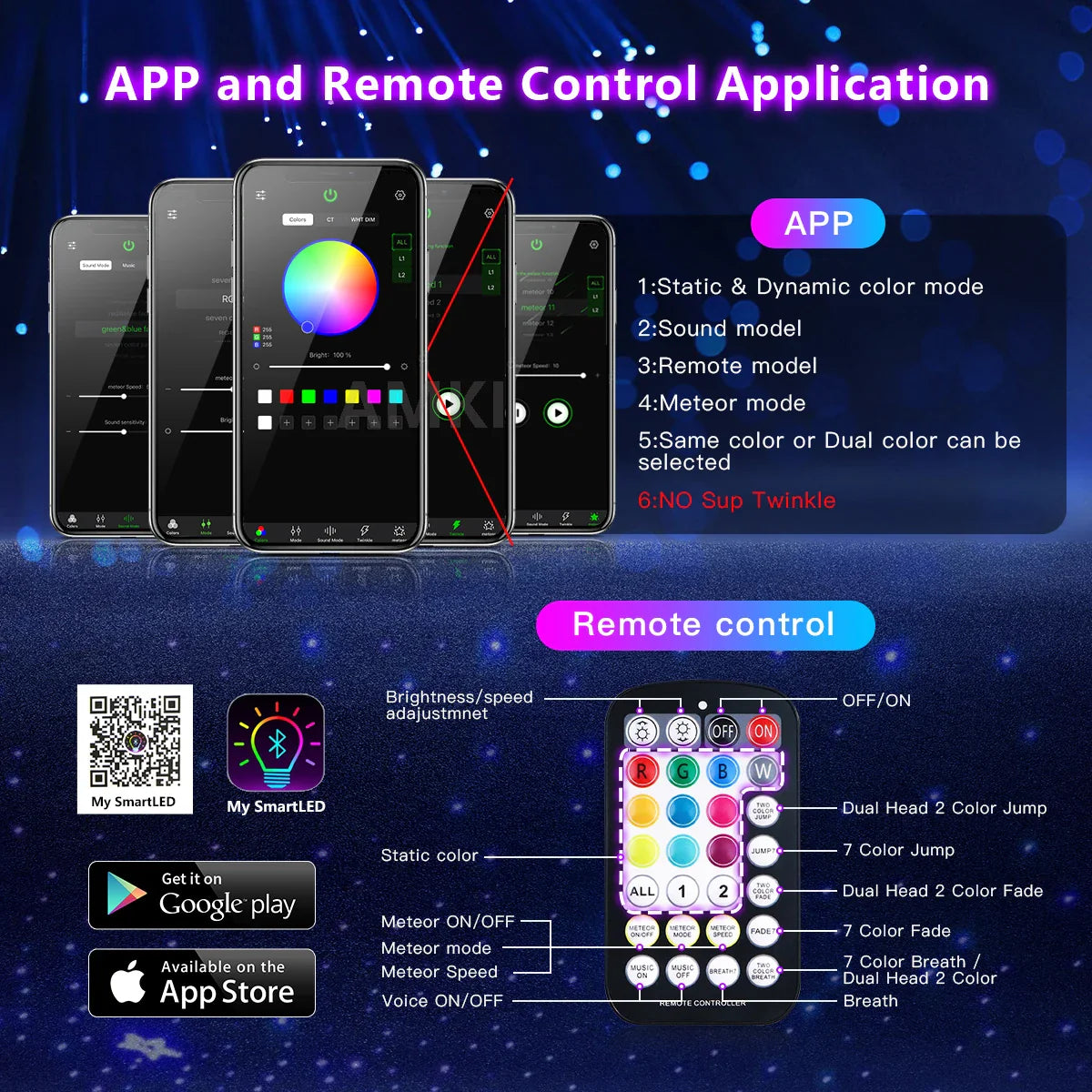 32W Dual Port RGBW Meteor Ceiling Car Roof Shooting Star Light LED Fiber Optic Light APP Music Starry sky Interior Atmosphere