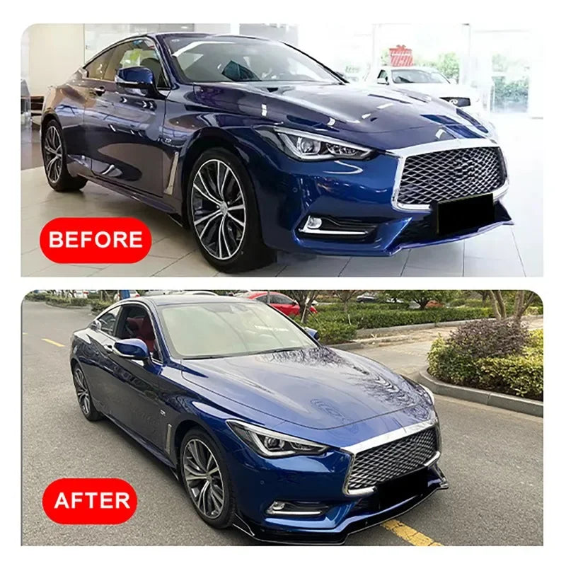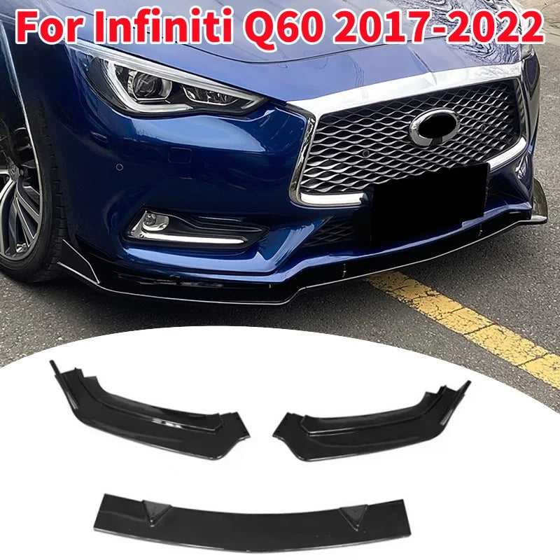 3Pcs/set Glossy Black Car Front Bumper Lip Diffuser Spoiler for Infiniti Q60 2017-2022