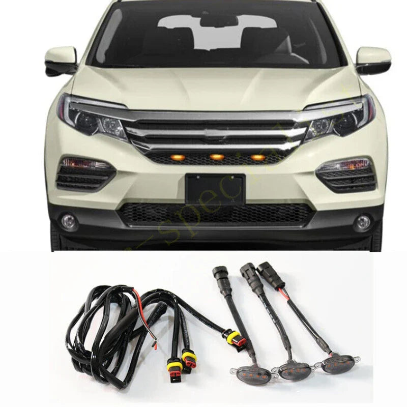 3X For Honda Pilot 2016-2018 Car Front Grille LED Light Raptor Style Grill Cover
