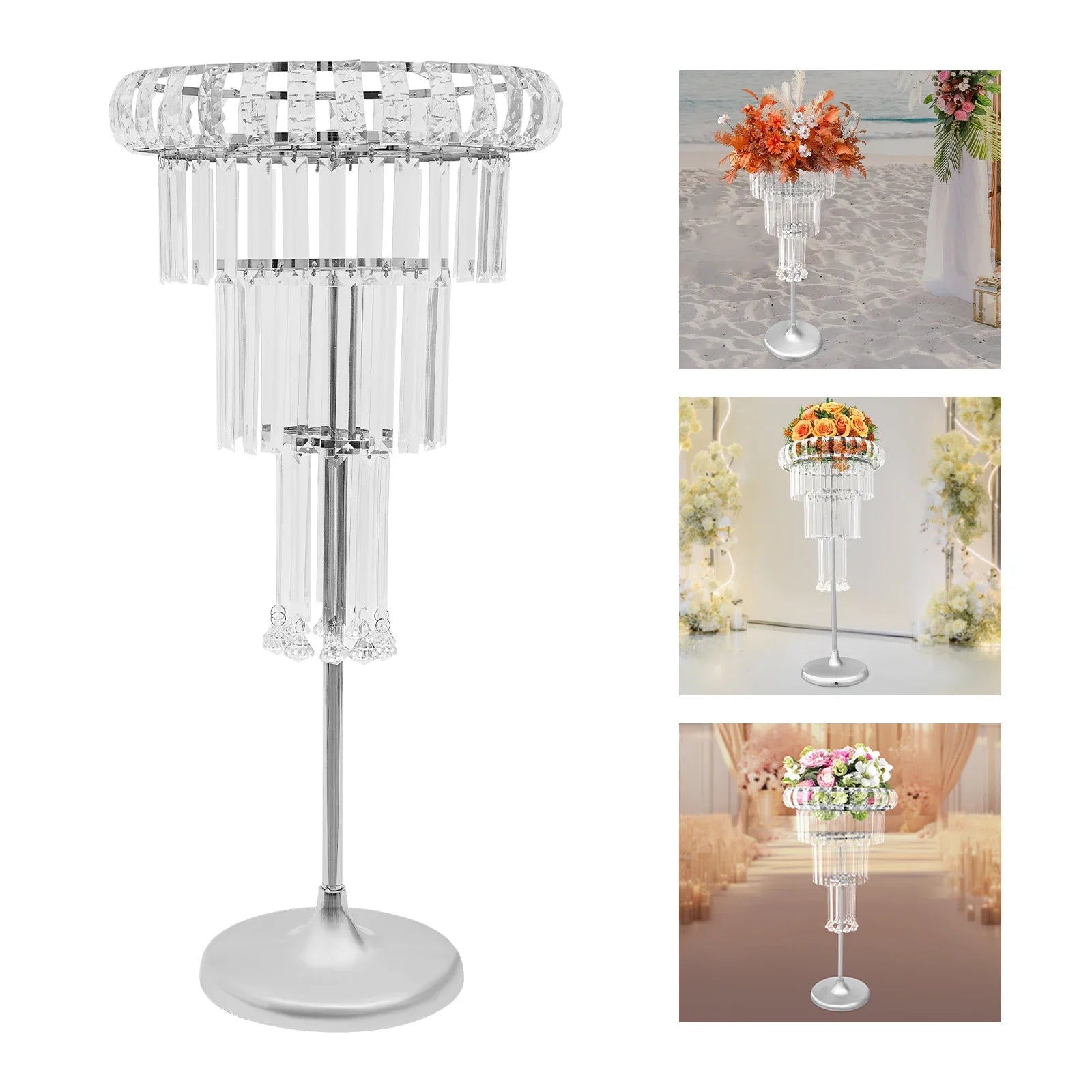 4-Tier Wedding Flower Stand - Flower Stand with Acrylic Pendants for Wedding Party Centerpieces Decor