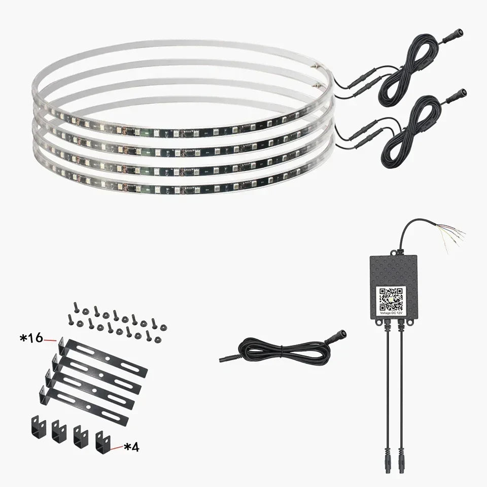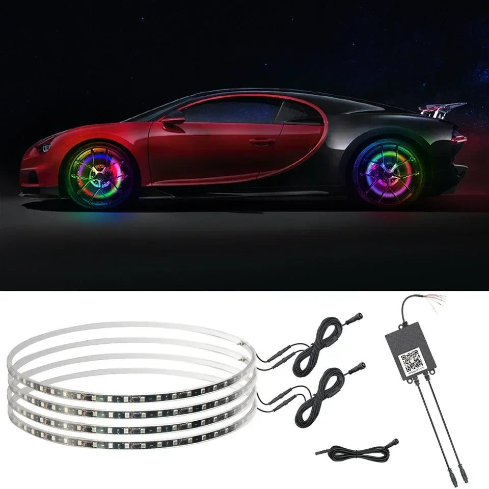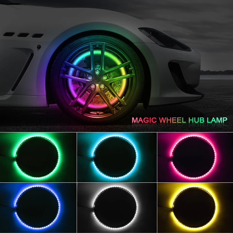 Introducing the 4Pcs Magic Colourful Hub Light Wheel Led Car Auto SUV Styling Lamp with High Quality Adapter APP Remote Control RGB 12-24V! This set of decorative lamps and strips is perfect for adding a touch of style and personality to your vehicle. Made with top-quality materials and a reliable adapter, you can be sure that these lights will keep shining brightly on all of your adventures.