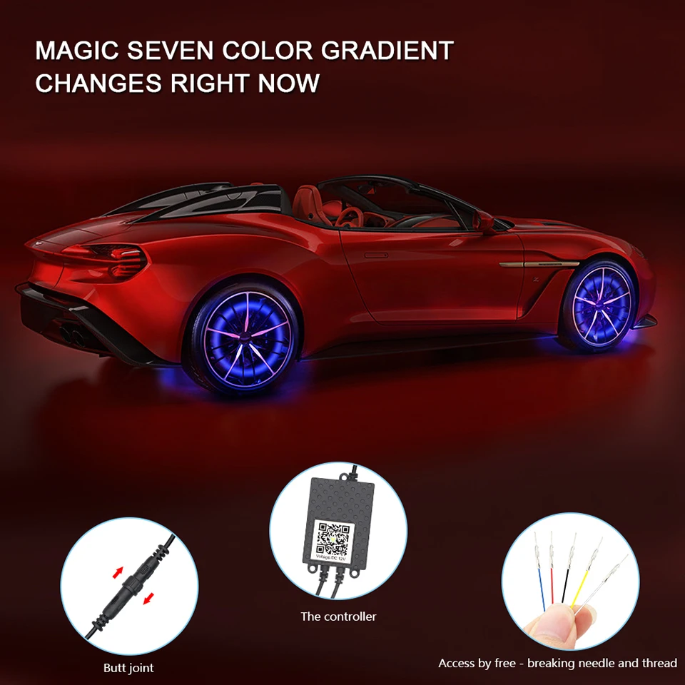4Pcs Hub Light Wheel Led Car Modification Accessories Dream Colorful Auto SUV Styling Lamp with tune brake signal APP Remote 12V