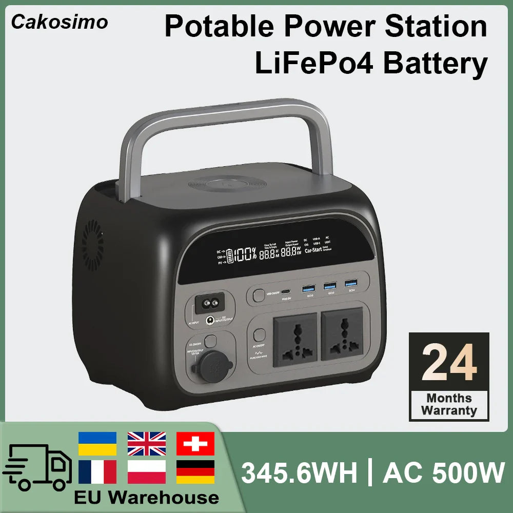 500w LiFePo4 Portable Power Station 345wh 108000mAh Camping Outdoor Solar Generator Batteries 220V 110V AC Output Power Bank RV Fishing