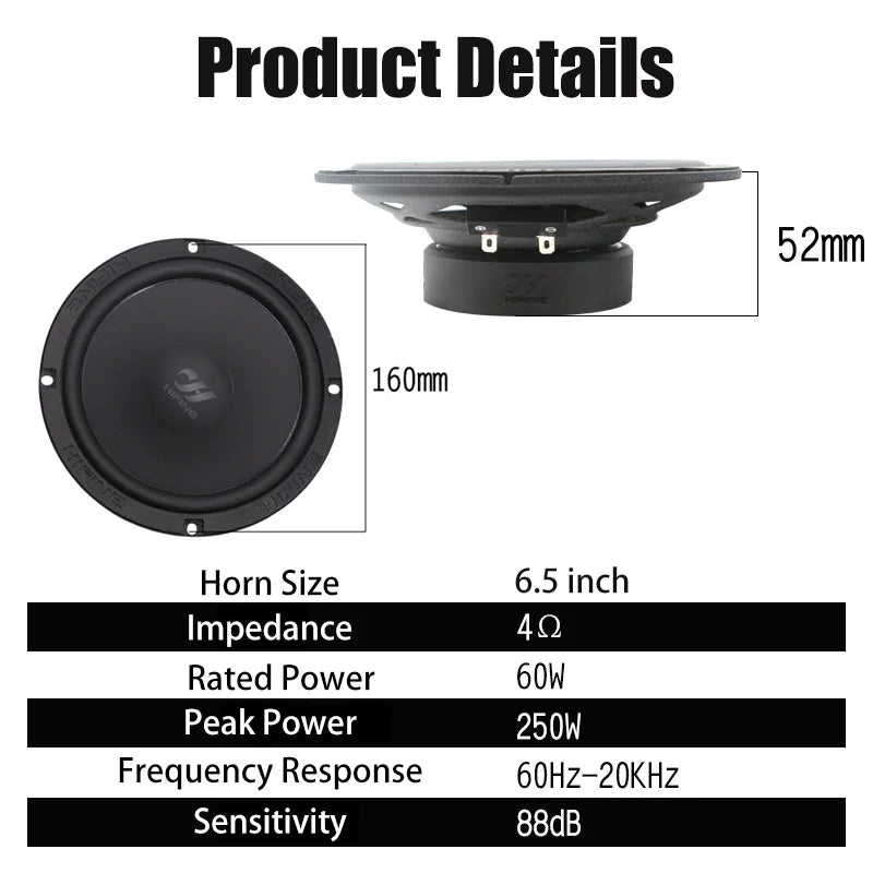 6.5 Inch Two Way Speaker Car Speaker Set 4 Ohms RMS 60W MAX 250W High Quality Car Audio Universal Modification Car Speaker Kit