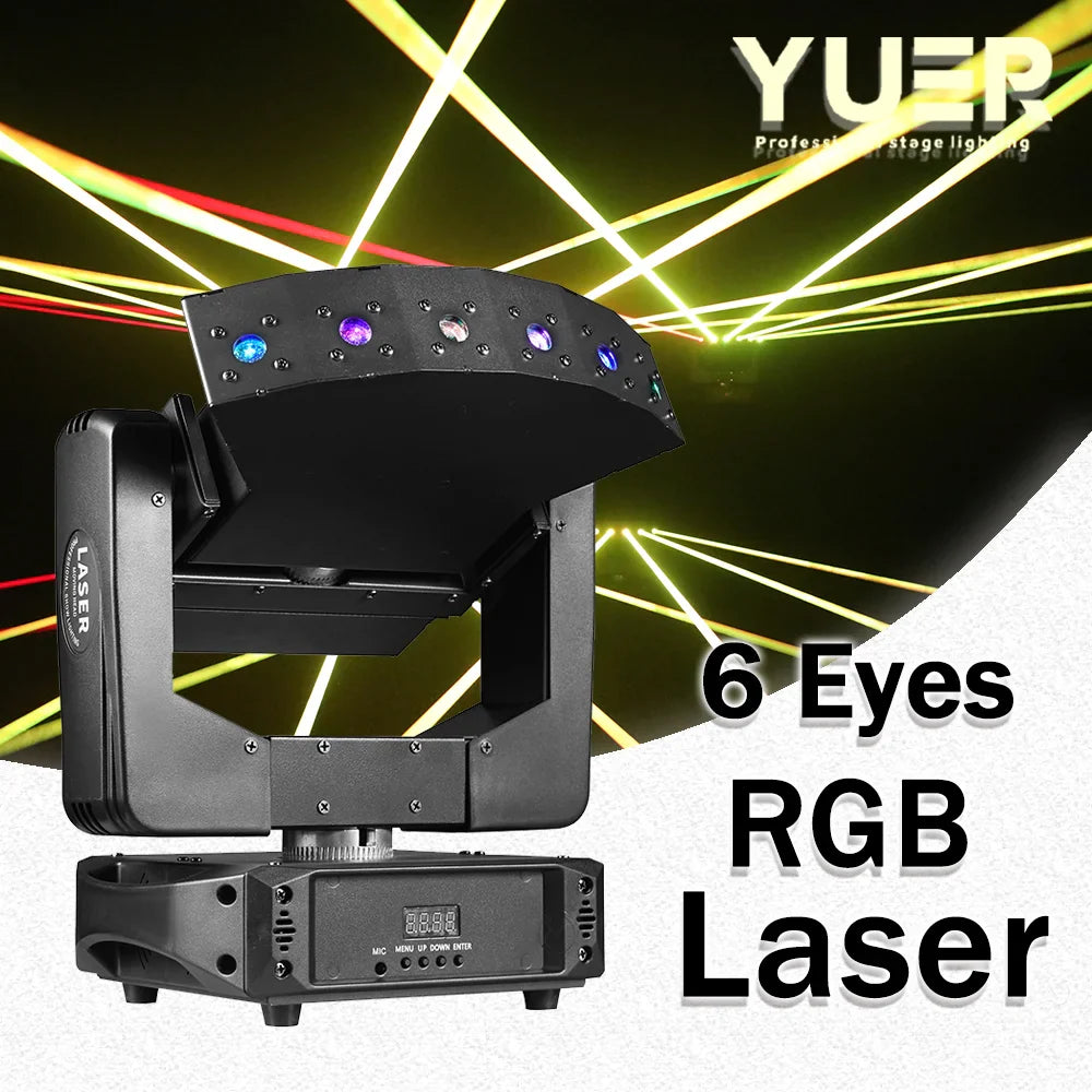 6 eyes RGB Laser Strobe beam Moving head light DMX Auto Sound Control Professional lighting machine for DJ Disco party bar Stage power tools
