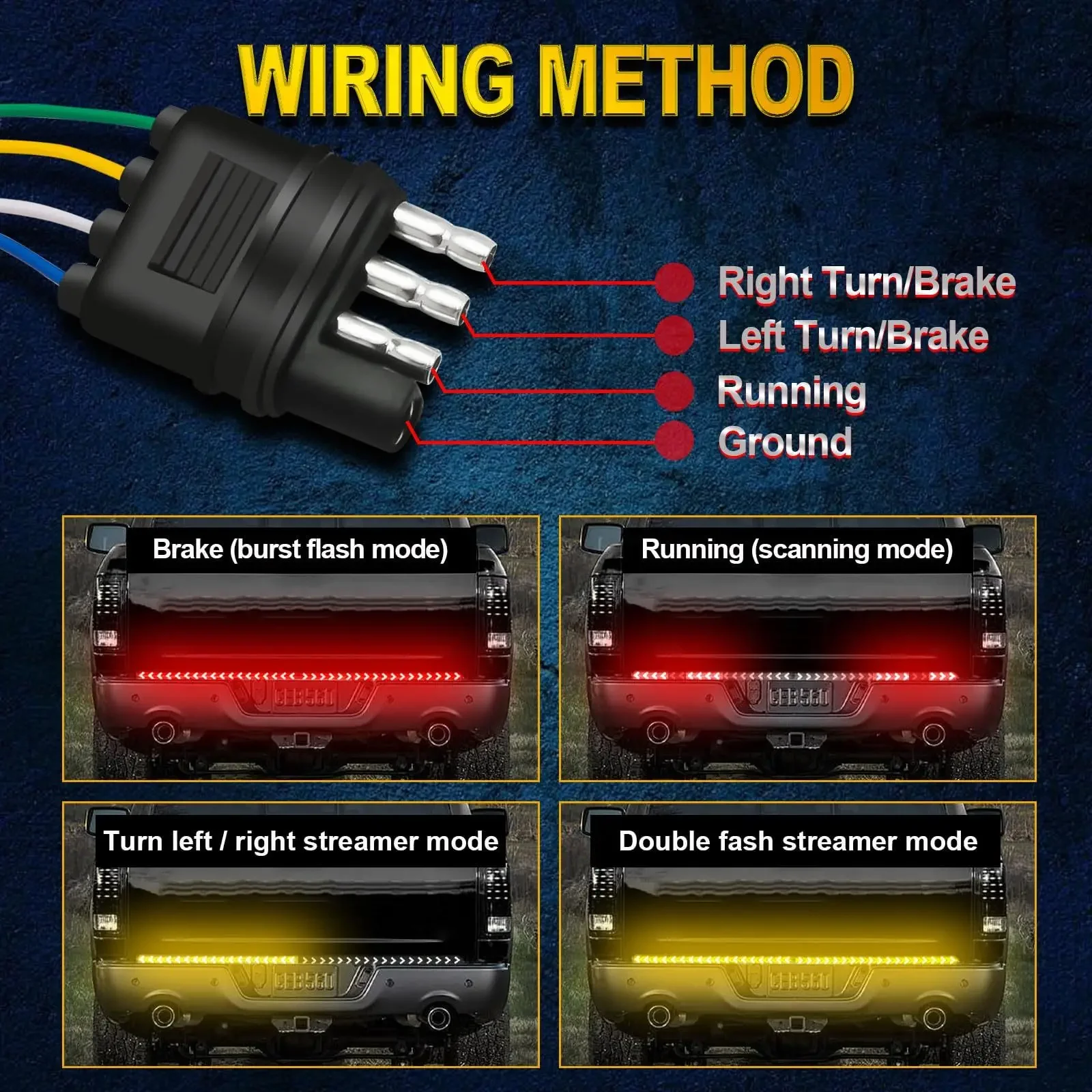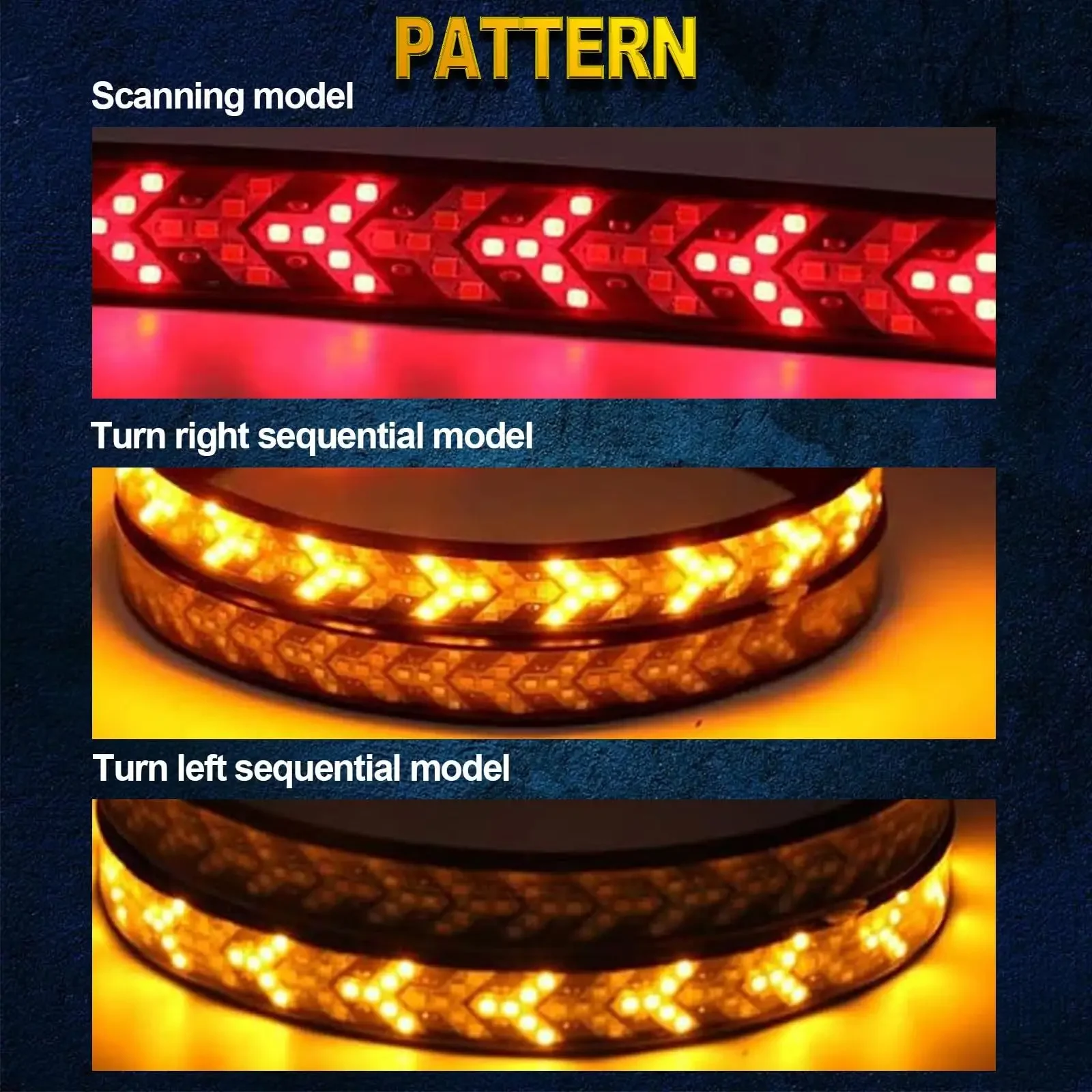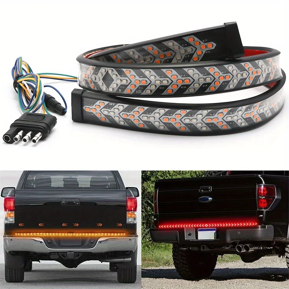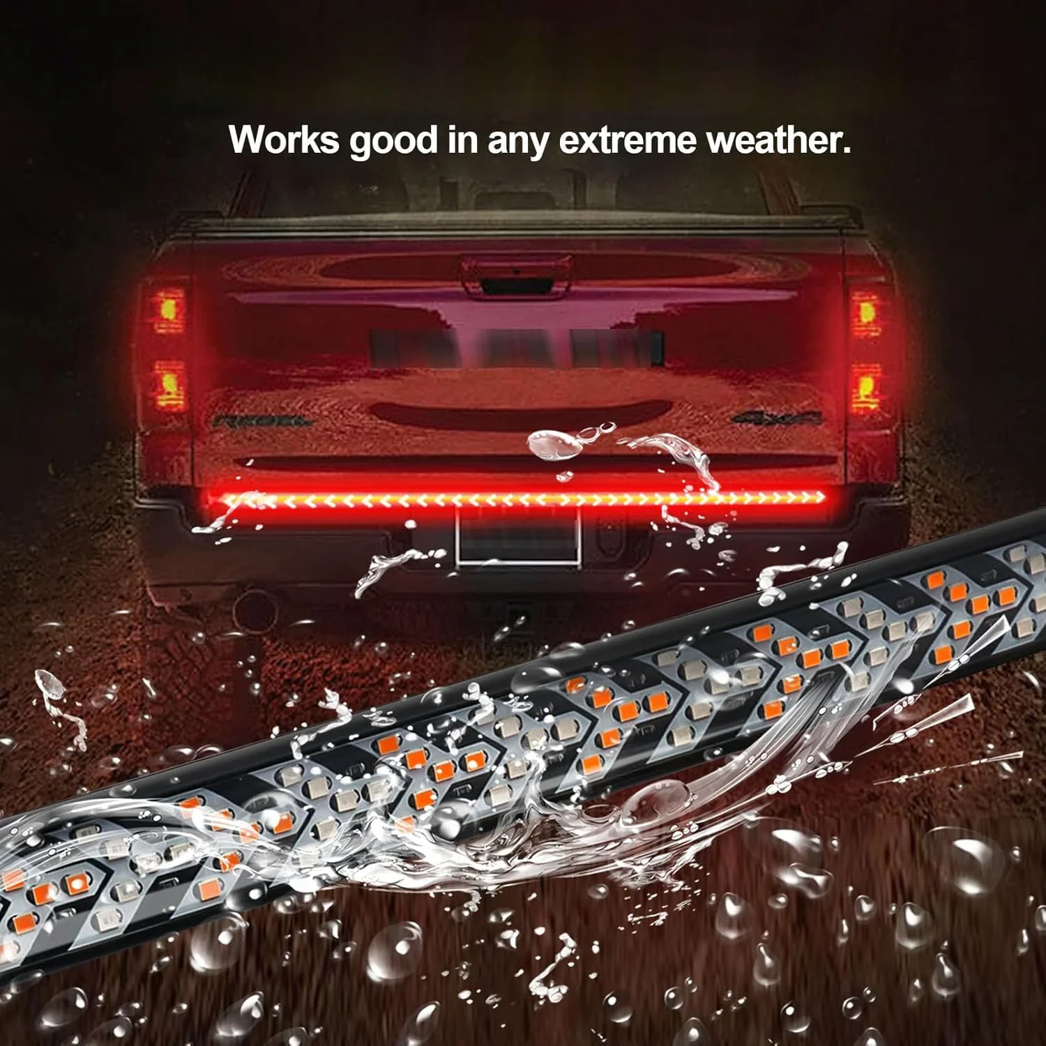 60'' LED Tailgate Light Strip 12V Flexible Red Brake Amber Yellow Sequential Turn Signal Light for Pickup Trucks Trailers RV Van