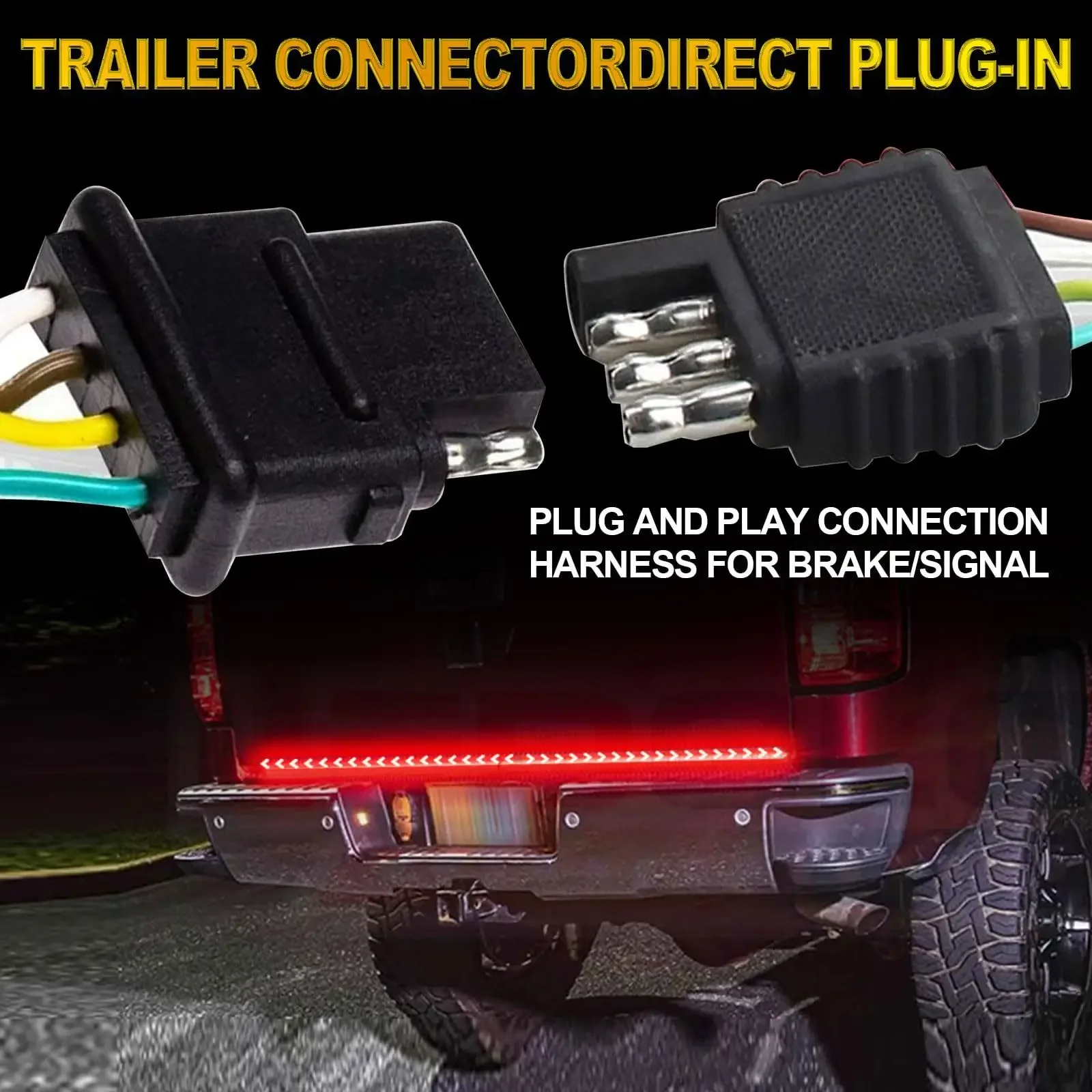 Easy Installation - well conductive standard 4-pin flat plug and Self-Adhesive tape, can be easily stuck on any smooth surface, simple installation without screws required. Plug-N-Play,Steering priority function: When the turn signal or double flashing light is turned on, the brake light will not turn on. It is necessary to turn off the turning signal or double flashing light before the brake light can be turned on normally.