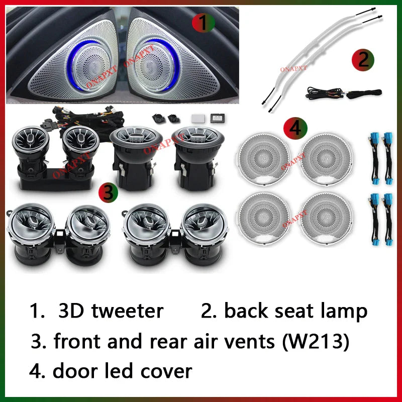 64 Colors For Mercedes Benz W213 E-Class Coupe W238 For AMG E43 E53 LED Air Vents 3D Rotating Tweeter Speaker Interior Ambient Light