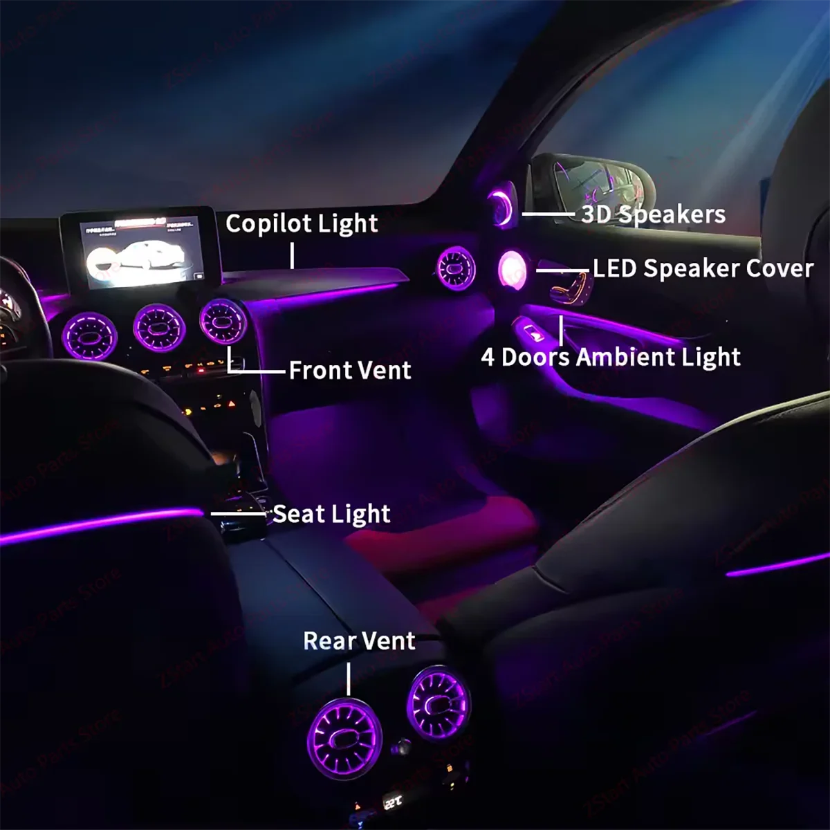 64 Colors Led For Mercedes-Benz C GLC W205 X253 Coupe For AMG C43 C63 MB Led Door Dashboard Lamp Air Vent Nozzle Ambient Light
