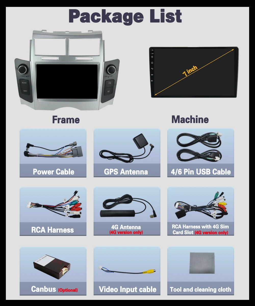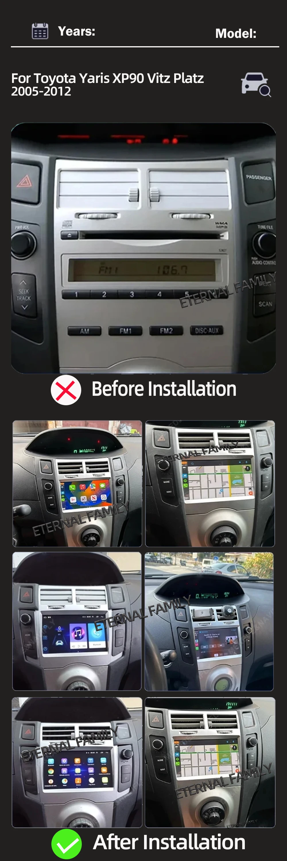 7'' Android 14 Car Radio For Toyota Yaris XP90 Vitz Platz 2005-2012 GPS Navigation Stereo CarPlay Auto Multimedia 4G WIFI Player