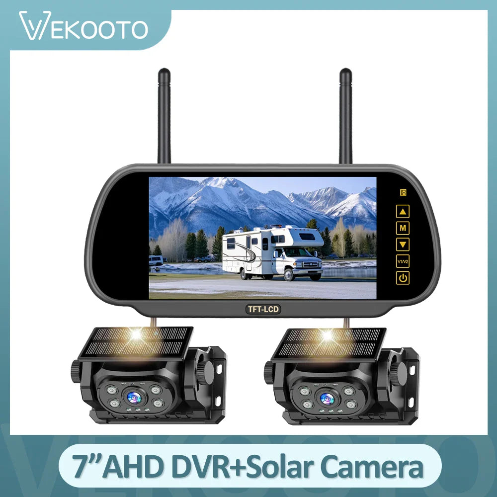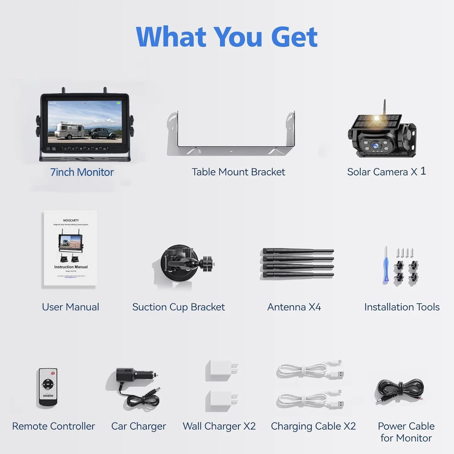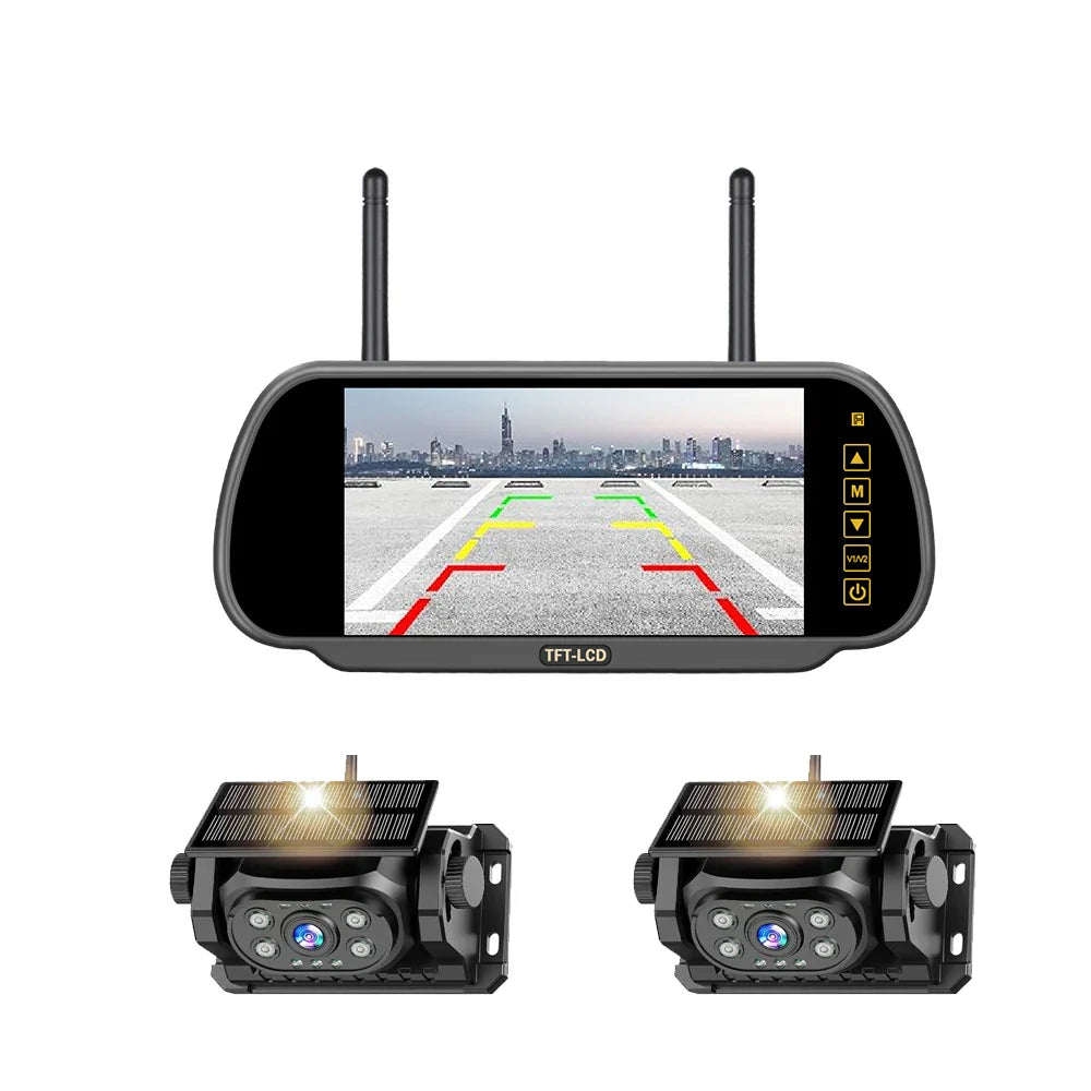 7 Inch 1080P Monitor Wireless Magnetic HD Solar Backup Camera 9600mAh Battery Powered Rechargeable for Car Truck Trailer