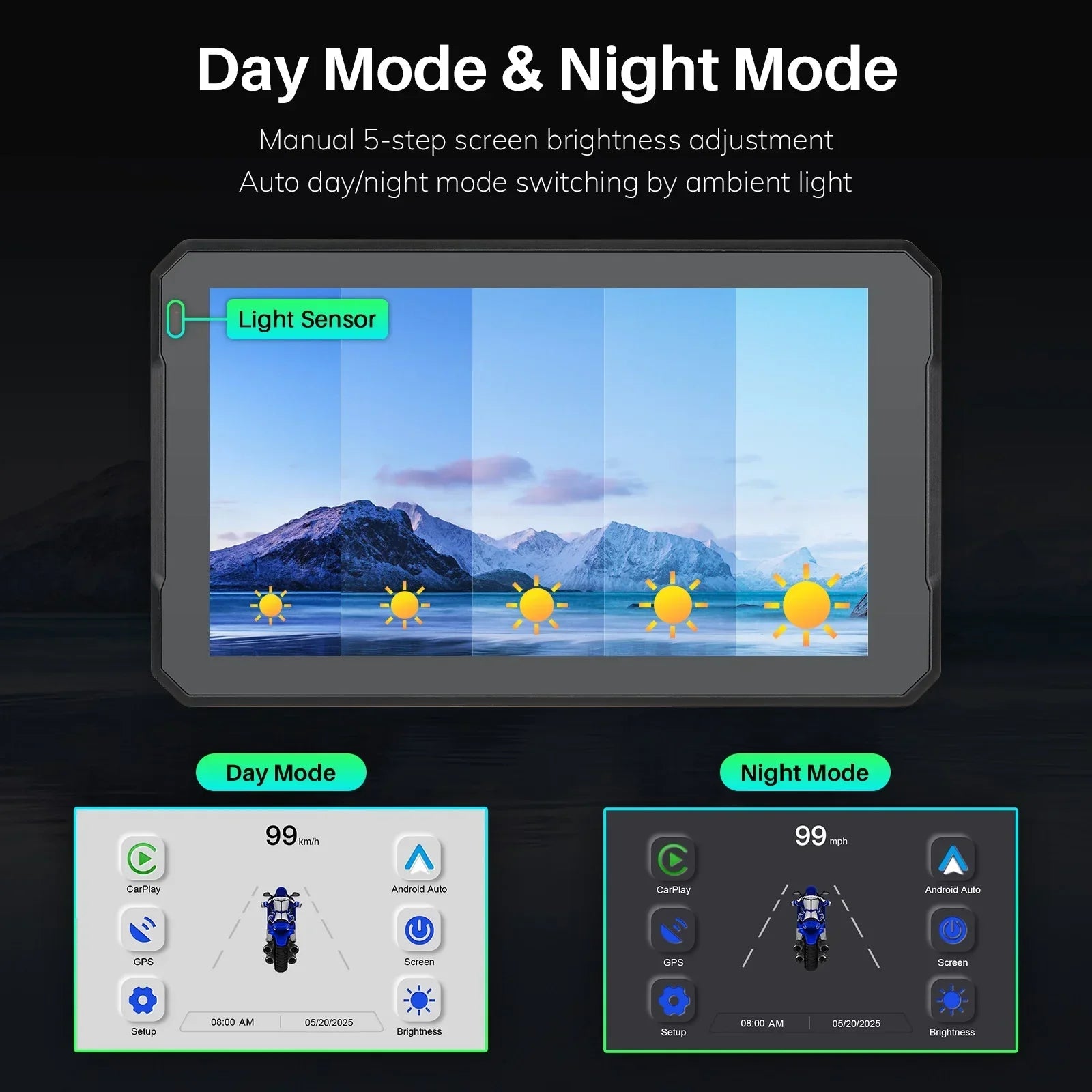 This motorcycle gps navigator screen is a 1280X720P QLED display. The 1280X720P resolution is a pivotal standard in the motorcycle CarPlay industry, striking an ideal balance between clarity and performance while ensuring seamless compatibility with various applications and navigation systems. QLED technology enhances the visual experience with vivid colors, high contrast ratios, and excellent brightness, delivering sharp and detailed images even under direct sunlight, making it the perfect choice for motorcycle riders seeking both functionality and visual excellence.