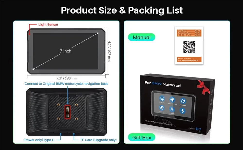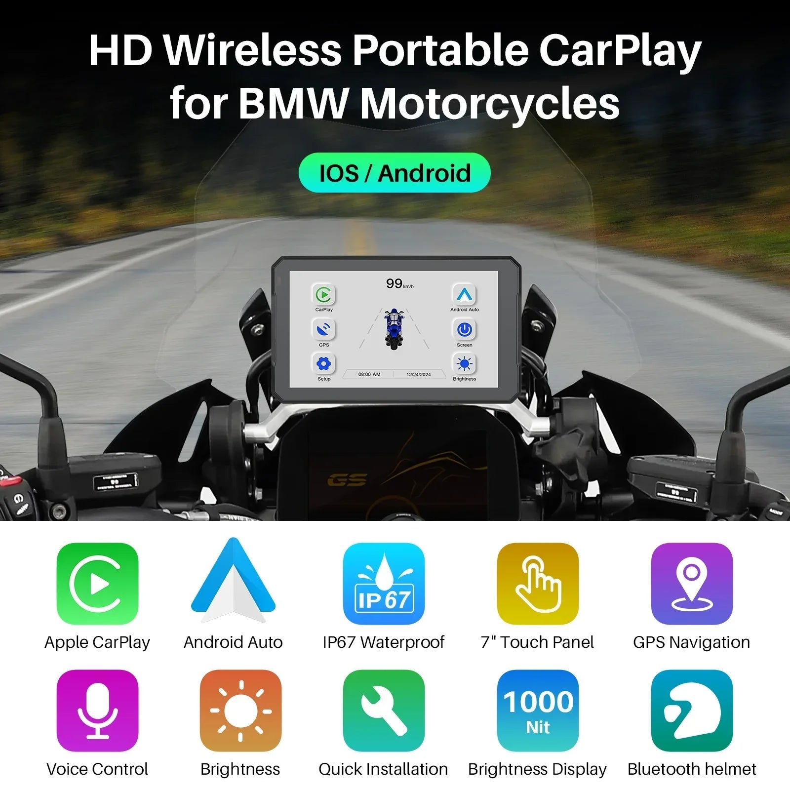 7 Inch Android Auto Carplay for Bmw Motorcycles GPS Screen Wireless Navigator Carplay Screen Motorcycle Waterproof Display