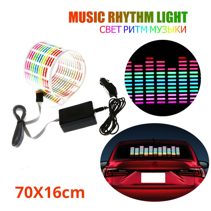 70X16CM Car RGB LED Music Rhythm Flash Light Sound Activated Sensor Equalizer Rear Windshield Sticker Styling Neon Lamp