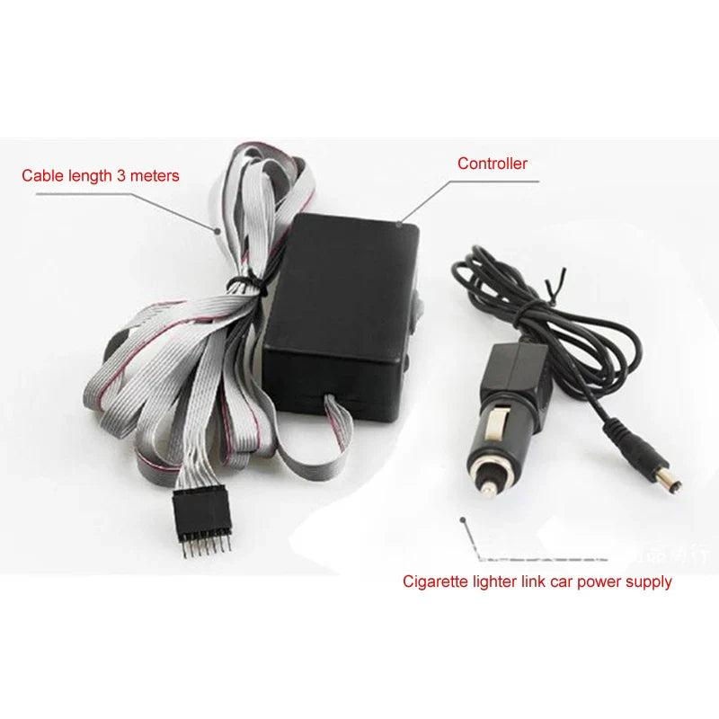 Connect the control box and the lamp sticker with a 3m long cable, and link the control box with the cigarette lighter.