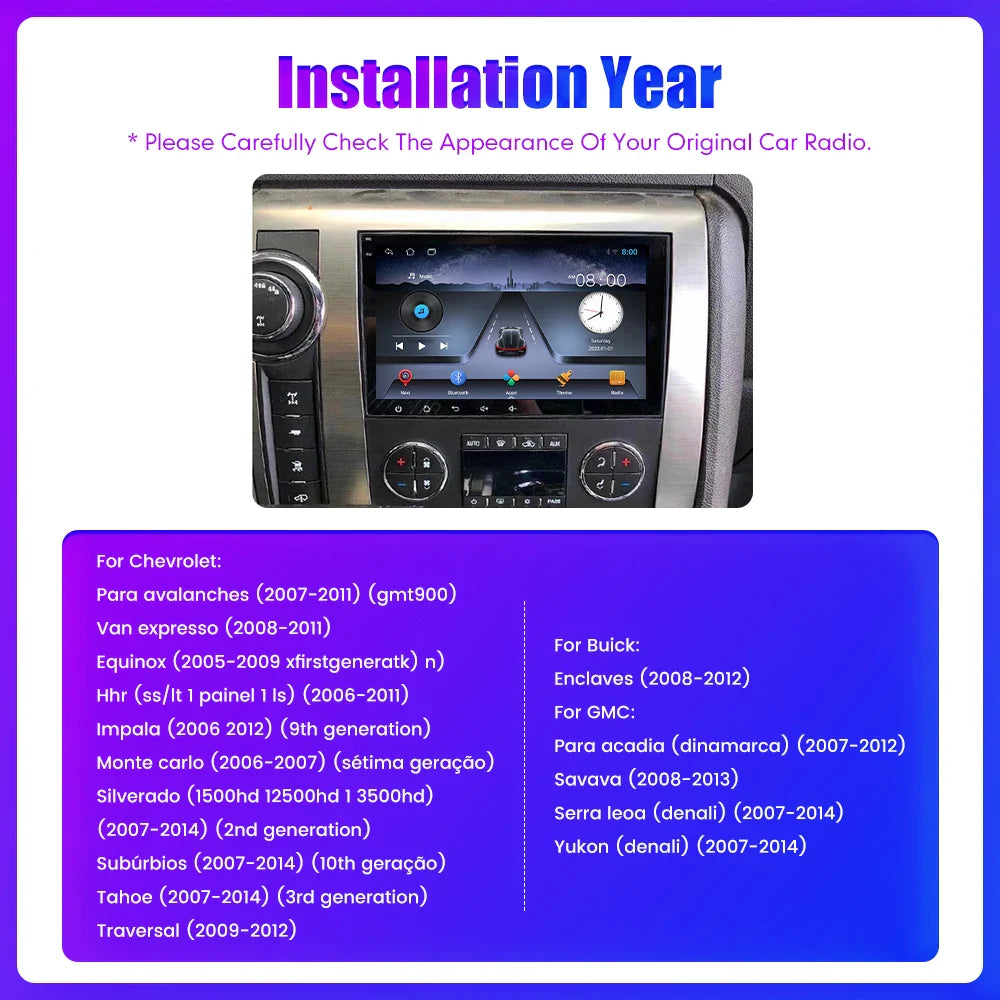 8" 2Din Android Auto Radio Stereo GPS Carplay Multimedia Video Car Radio For Chevrolet Silverado Impala GMC Yukon Acadia Sierra