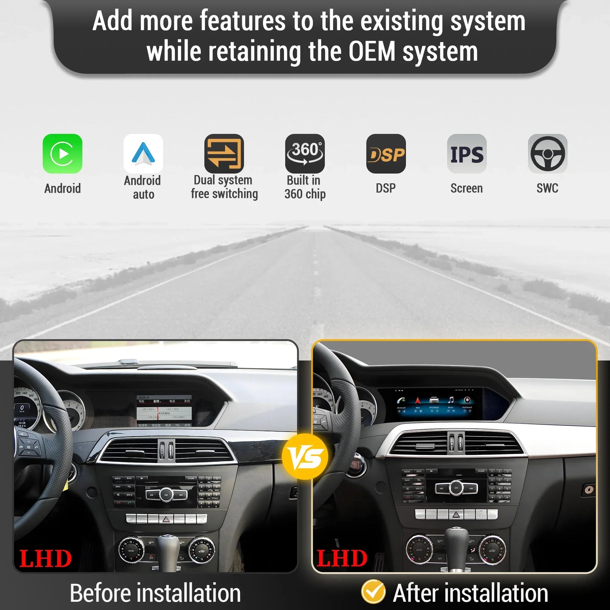 8.8 inch Android 14 For Mercedes Benz C Class W204 S204 2011-2015 Car Radio BT Carplay Qualcomm Snapdragon 680 Head Unit Screen