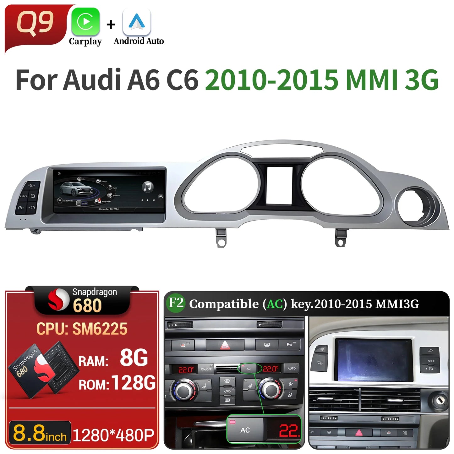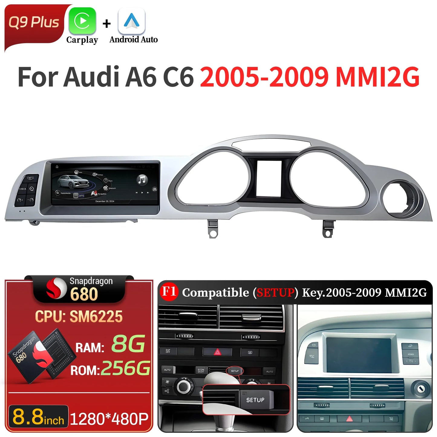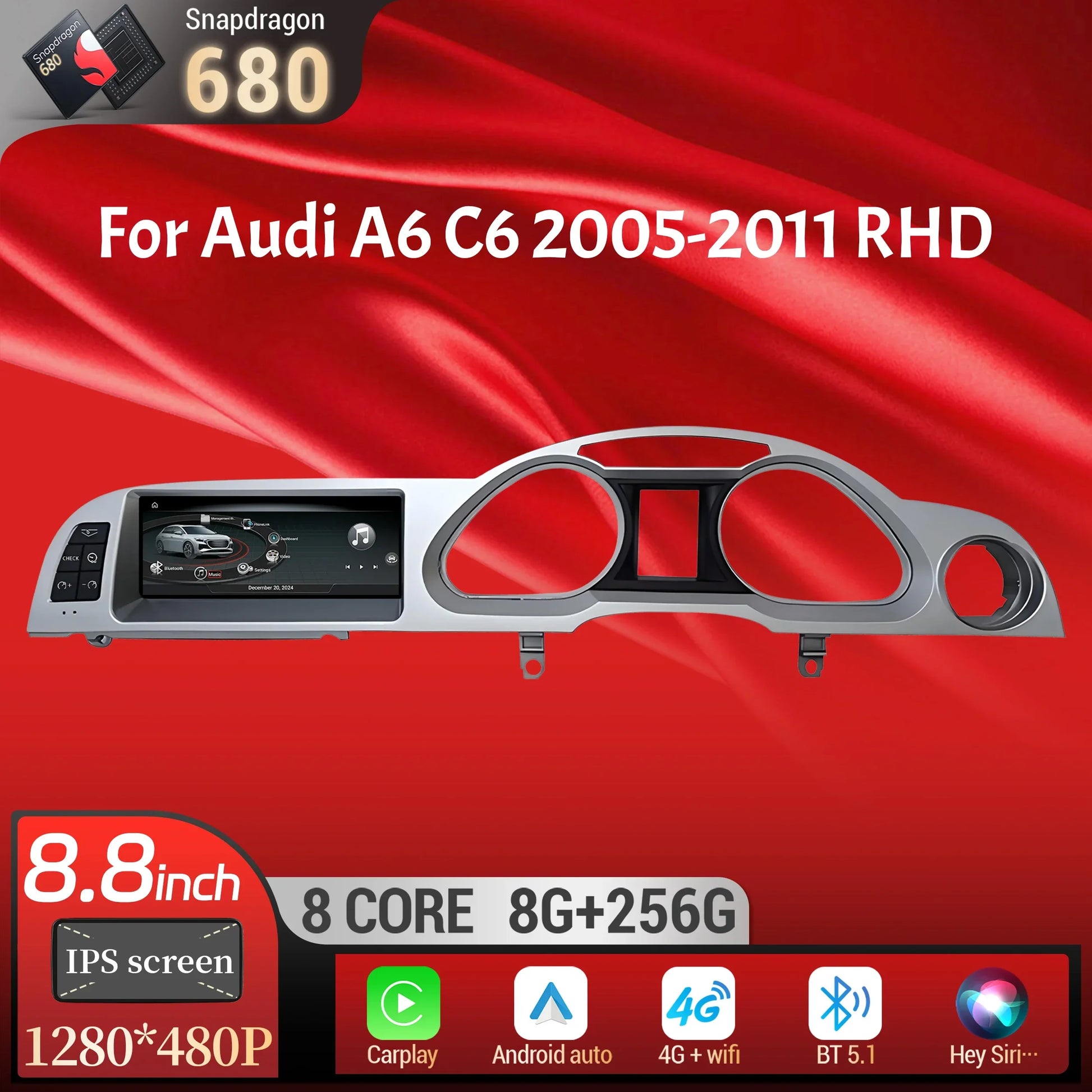 8.8 inch Right Hand Drive Android 14 For Audi A6 C6 2005-2011 Car Radio Wireless BT Carplay Qualcomm Snapdragon 680 Touch Screen