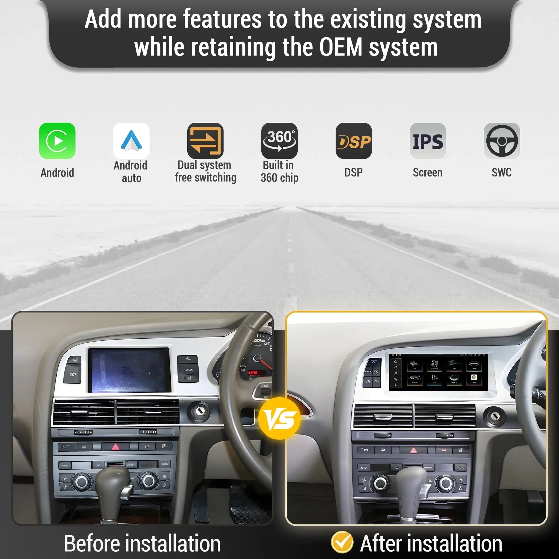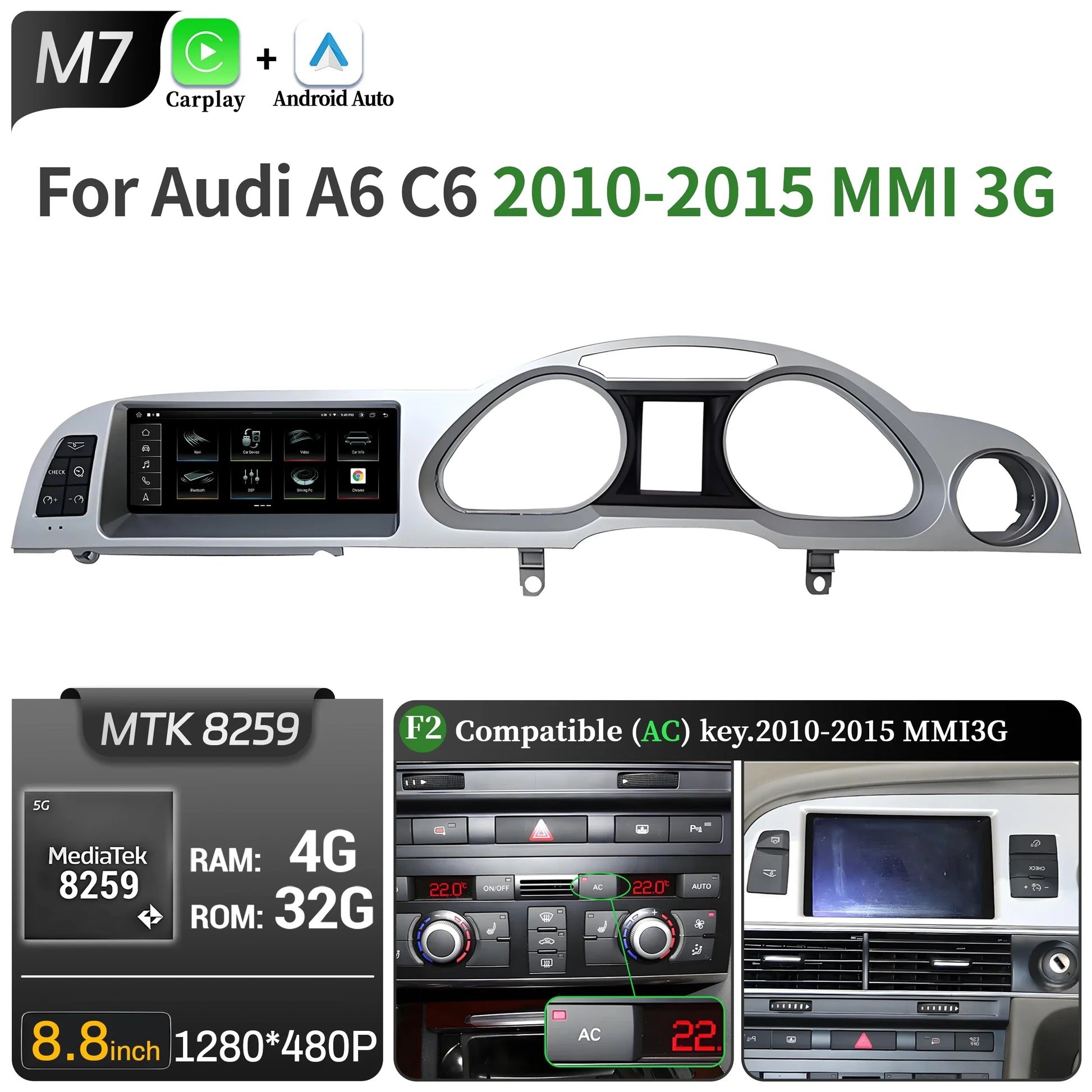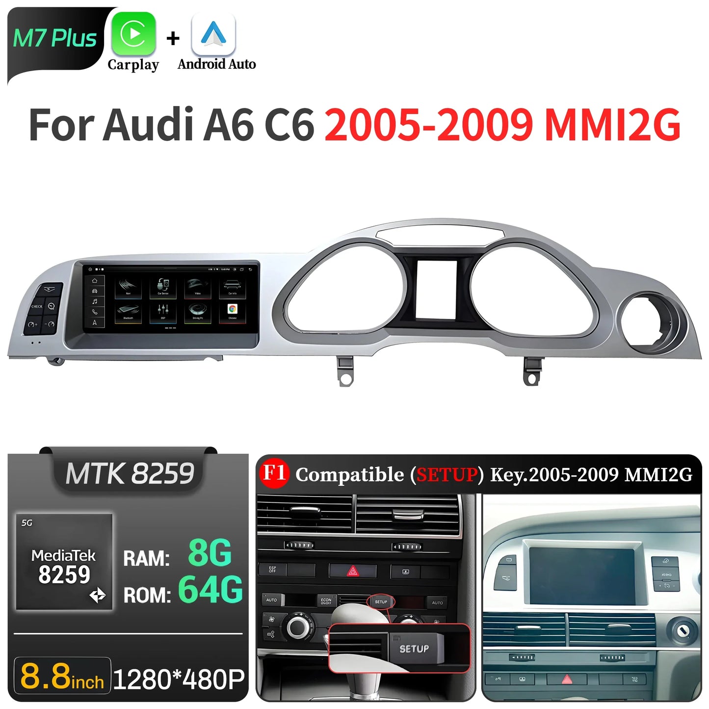 8.8 inch Right Hand Drive Android 14 For Audi A6 C6 2005-2011 Car Radio Wireless BT Carplay Qualcomm Snapdragon 680 Touch Screen