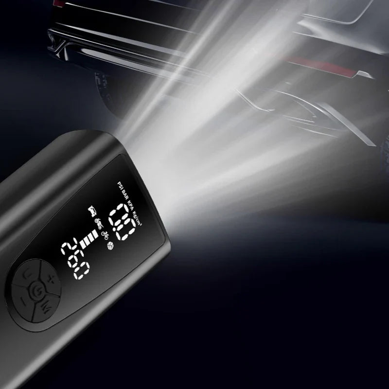 ●Use at night: 2 built-in LED lights that can turn on automatically and the back display make Mini Compressor easy to use even at night.