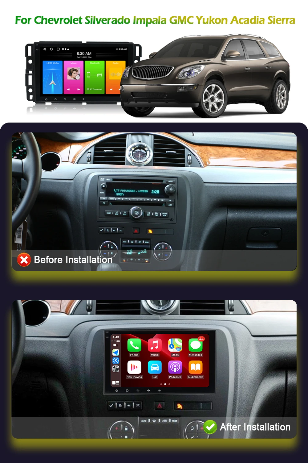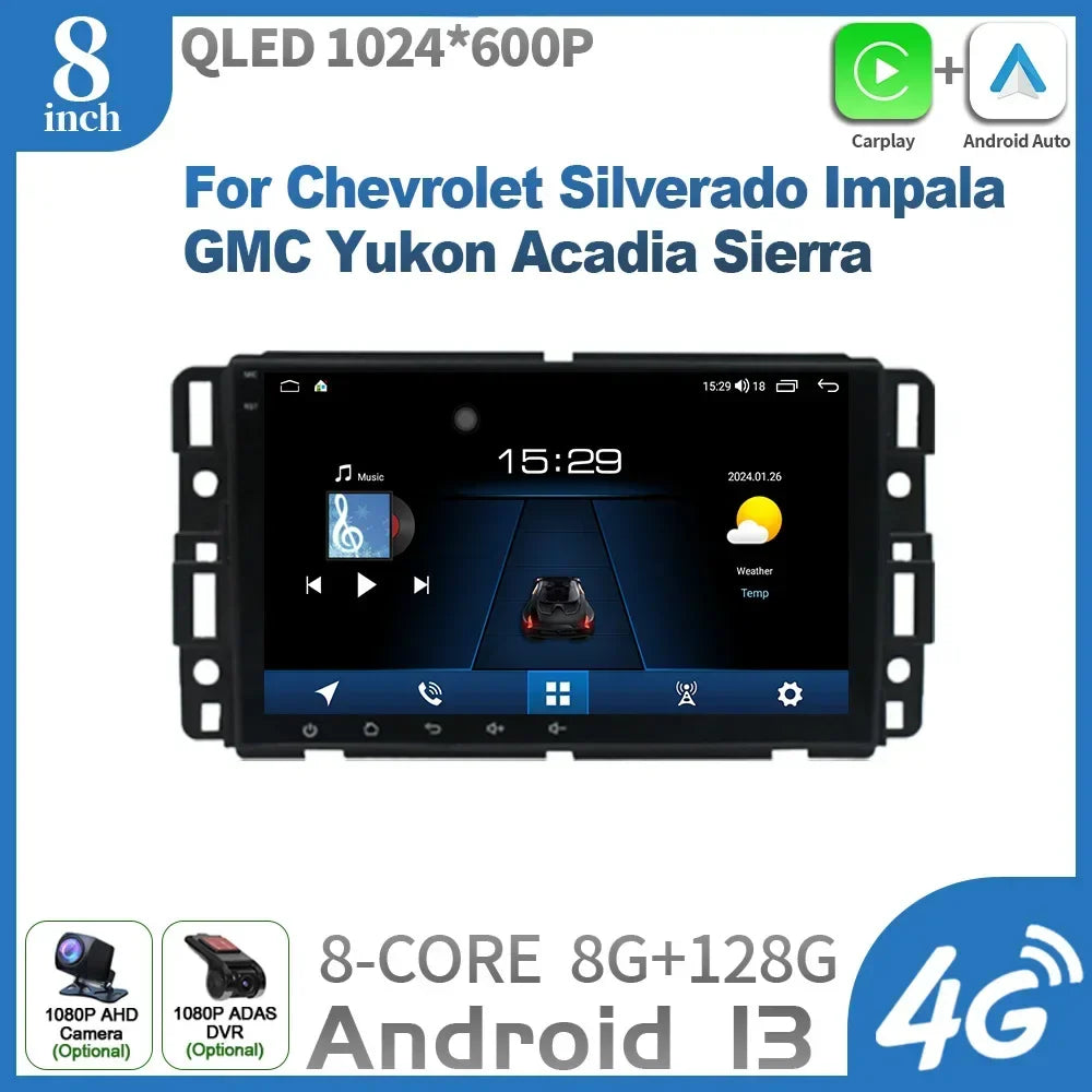 8inch For Chevrolet Silverado Impala GMC Yukon Acadia Sierra Mirror Link Android OS Car Radio Wireless Carplay 6+128G Screen