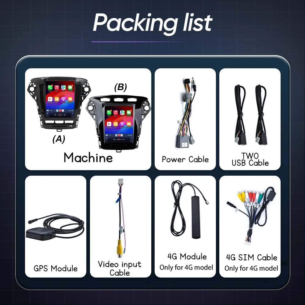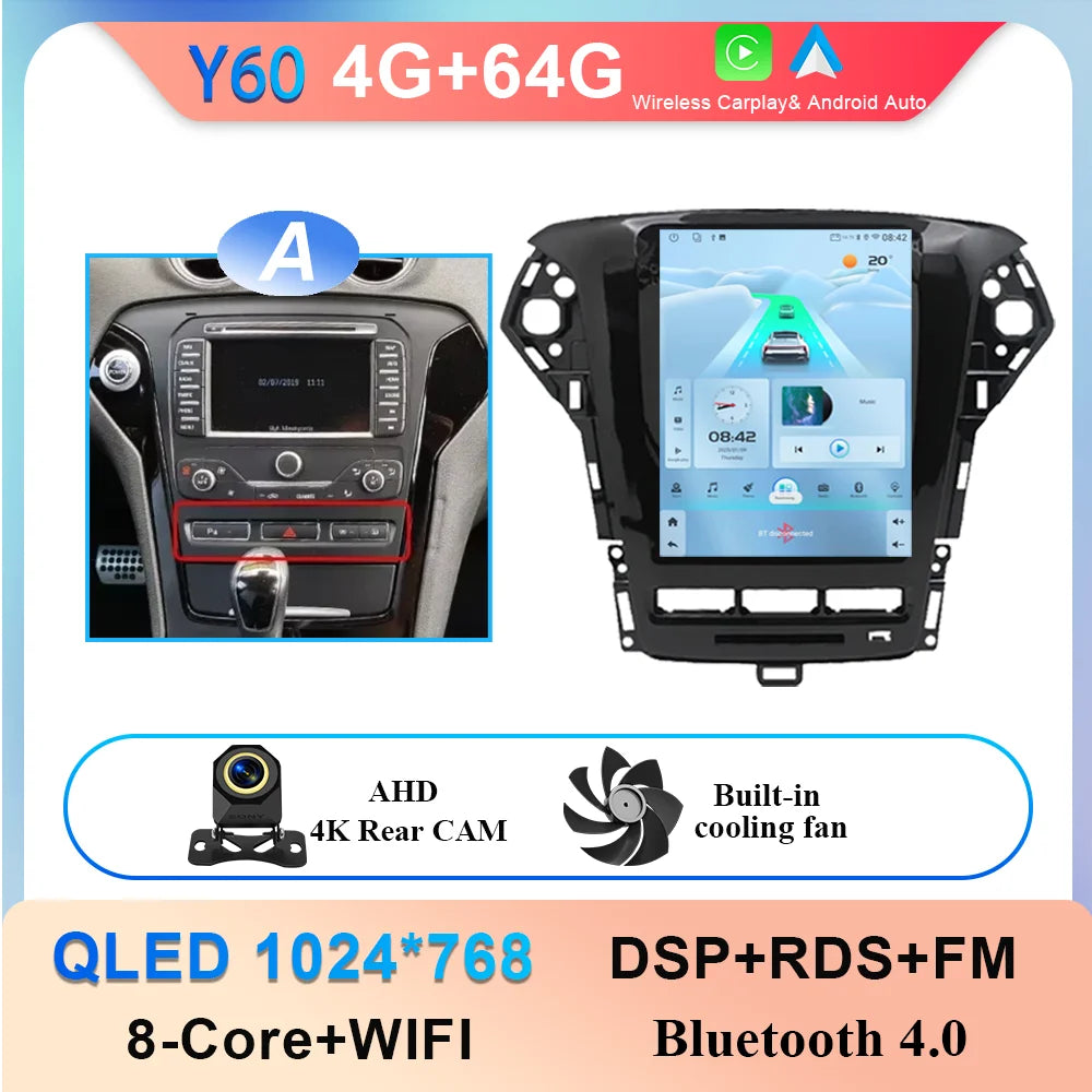 9.7 Inch Android 14 Car Radio Stereo Multimedia Player For Ford Mondeo MK4 2011 - 2013 Auto GPS Navigation wireless carplay DVD