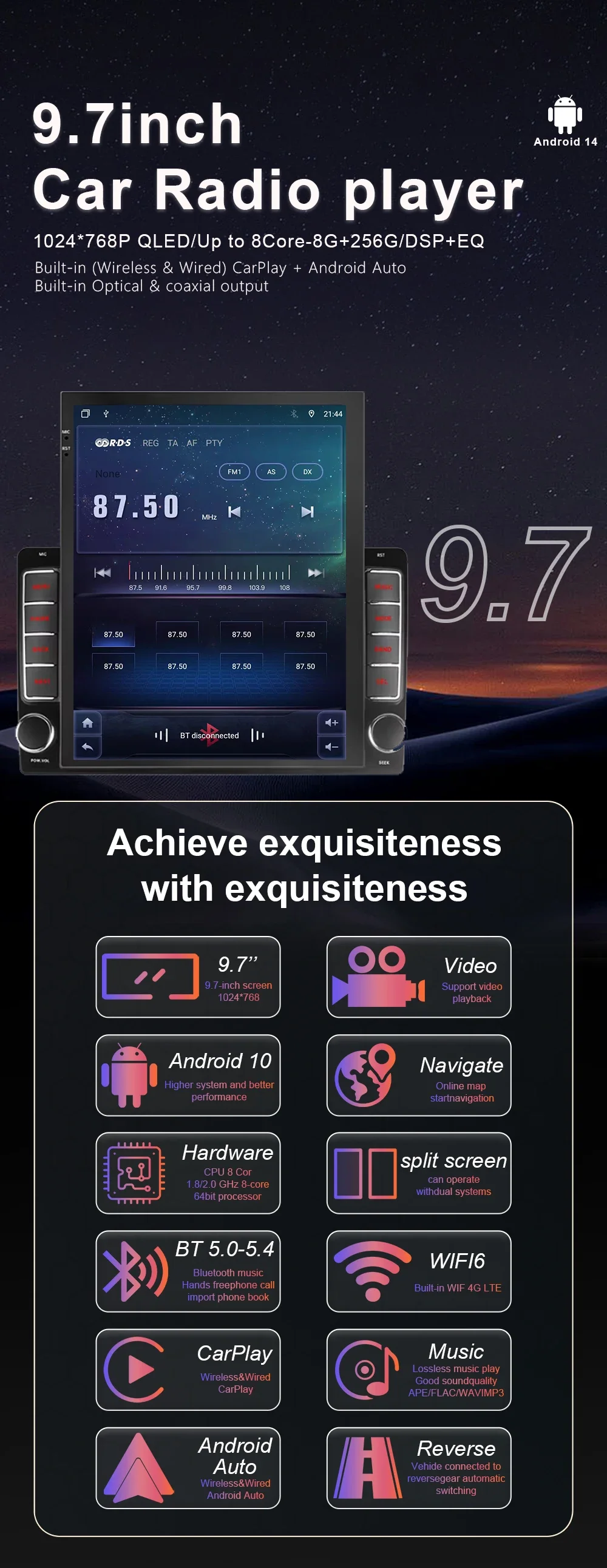 9.7 inch Android For Renault Trafic 3 14-21 For Opel Vivaro B Car Radio Carplay 2 Din Head Unit GPS Navigation Touch Screen