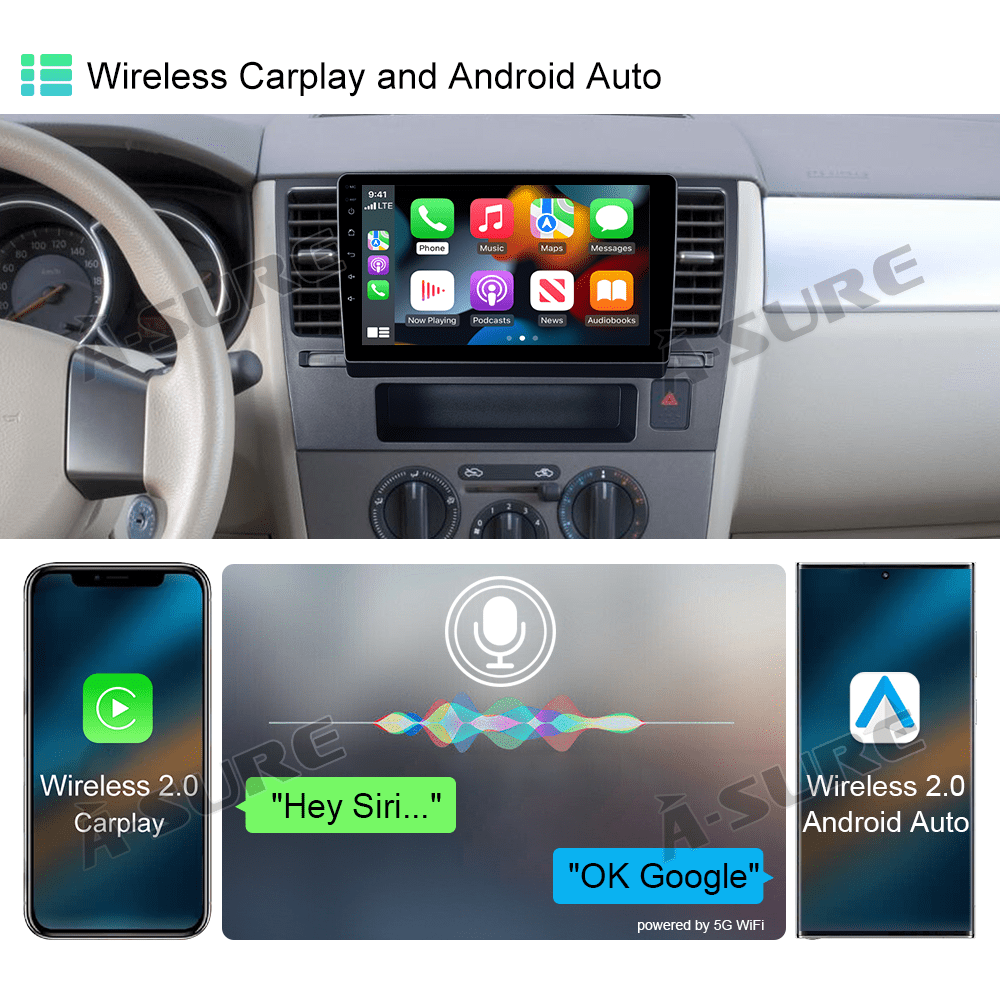 9" Android 13 Wireless CarPlay Car Stereo Radio for Nissan Versa 2007-2011 WiFi Bluetooth GPS DSP SWC USB 2+32GB