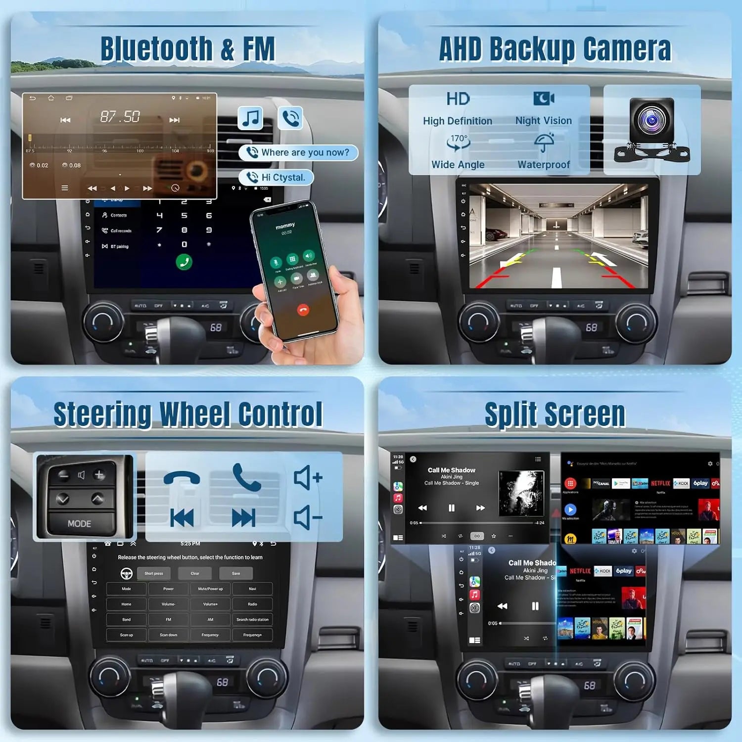 【Android Car Radio Player】Android 12 system, 4-Core processor, 2G RAM+32G ROM, 9inch 2.5D IPS touch screen, wireless carplay, wireless android auto, wired/wireless mirrorlink, offline/online GPS navigation, WIFI connection, bluetooth 5.1, FM radio, AHD backup camera, steering wheel control, split screen, 2 USB, EQ adjustable, multi-format music player, 1080p video player, video and audio output, AUX audio and video input, multiple UI and wallpaper choose.