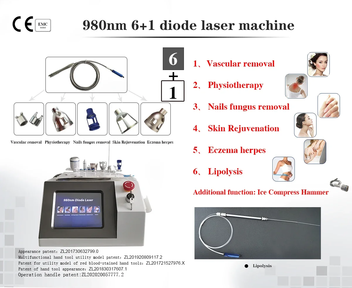 980Nm Diode Laser Machine 6 IN 1 For Effective Spider Vein And Vascular Removal Nail Commercial USE 2025 3Q