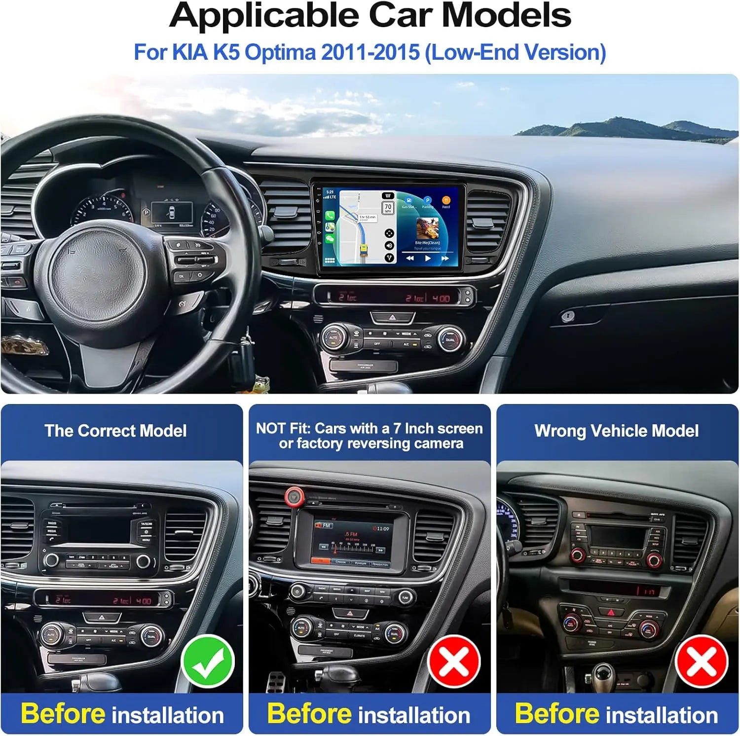 9Inch Car-play Car Stereo Radio GPS Navigation Wifi Compatible for Kia Optima K5 2011-2015 Android 13