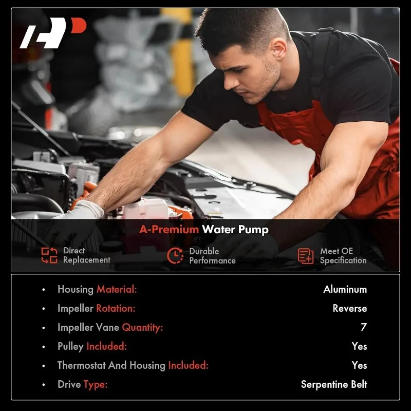 - [Buy with Confidence]: A-Premium offers a one-year unlimited-mileage guarantee on our meticulously crafted engine water pump. We offer a wide variety of automotive accessory categories, ensuring that you can hit the road with peace of mind.
