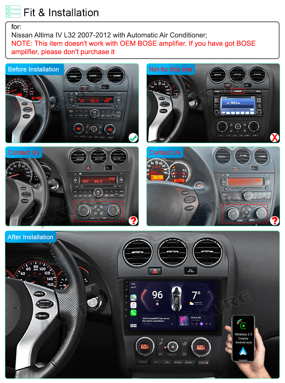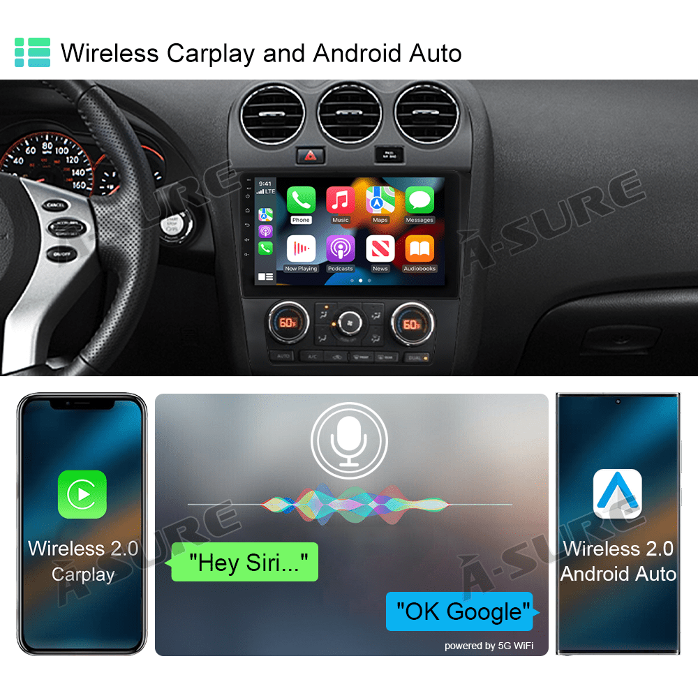 A-Sure Android 12 Car Stereo Radio for Nissan Altima IV L32 2007-2012 with Automatic A/C, 2GB +32GB