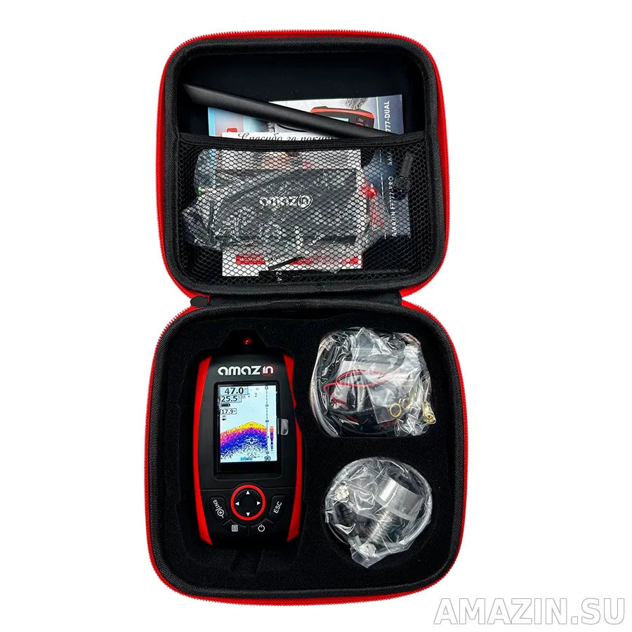 But not only functional characteristics make this echo sounder special. Beautiful design in branded Amazin-red color,Makes this echo sounder a bright accessory on any fishing. A Packaging box, Beautifully designed with care for every little thing, turns the acquisition into a real gift for any connoisseur of quality technology.