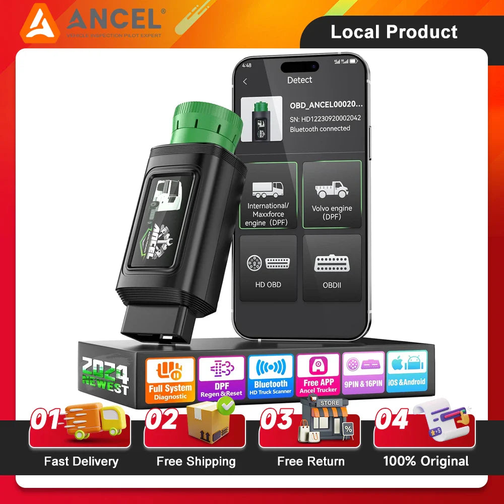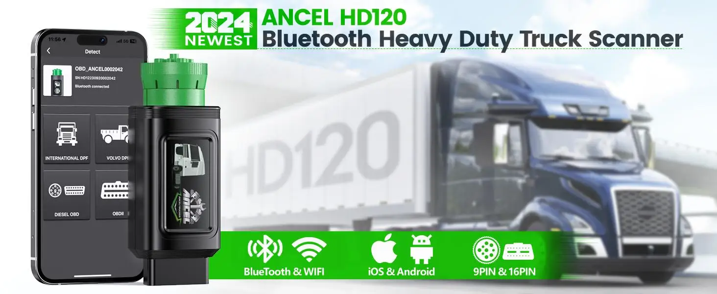 ANCEL HD120 Bluetooth Heavy Duty Truck Scanner DPF Regeneration Scanner Diesel Scanner All Systems Diagnostic Tools