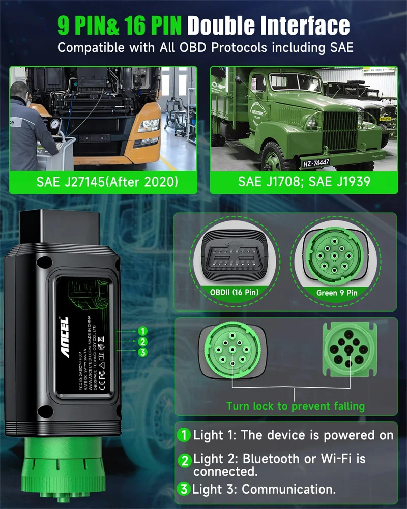Support Standerd OBD Protocols including SAE J1708; SAE J1939; SAE J27145(After 2020)