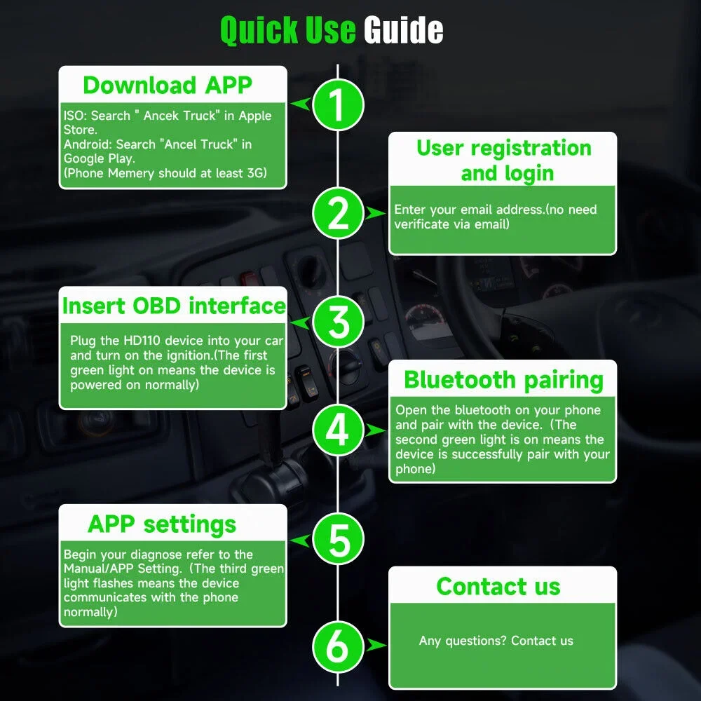 Ancel Trucker HD120 is a D.P.F. forced regeneration gadget developed for owners of Volvo commercial vehicles and International, DIY enthusiasts. After the product is connected to the vehicle, users can log in through their Android or iPhone cell phones and connect the testing device via Bluetooth or Wi-Fi to perform D.P.F. forced regeneration. At the same time, the vehicle data stream and fault code can be read remotely to clear the fault code.